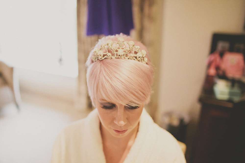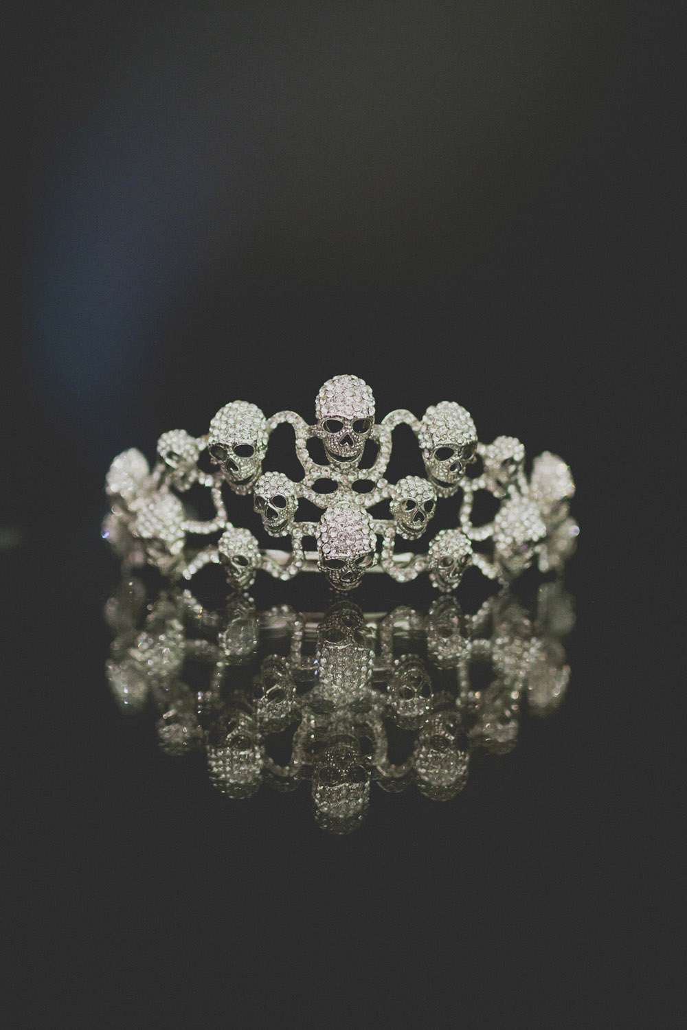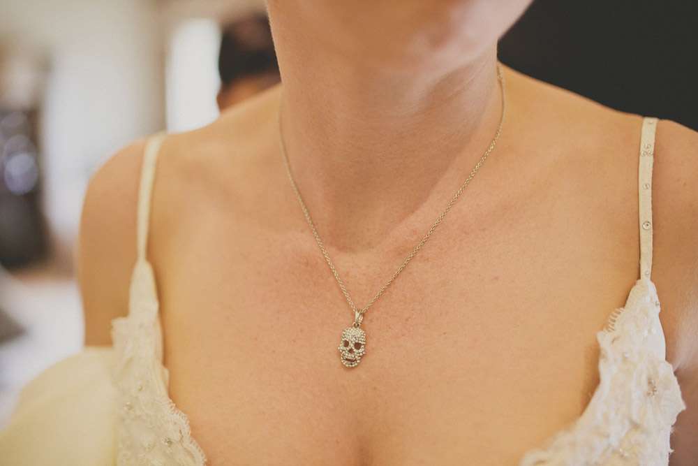 “I had always said that I would have a purple wedding dress and right up until I walked down the aisle Danny still thought it was going to be purple”, Victoria began. “However I couldn’t find a purple dress that wasn’t tacky so I ended up with a white one. Although I loved my dress I wanted to add a non-traditional spin so I wore a skull tiara, bracelet, earrings and necklace from Mikey.”