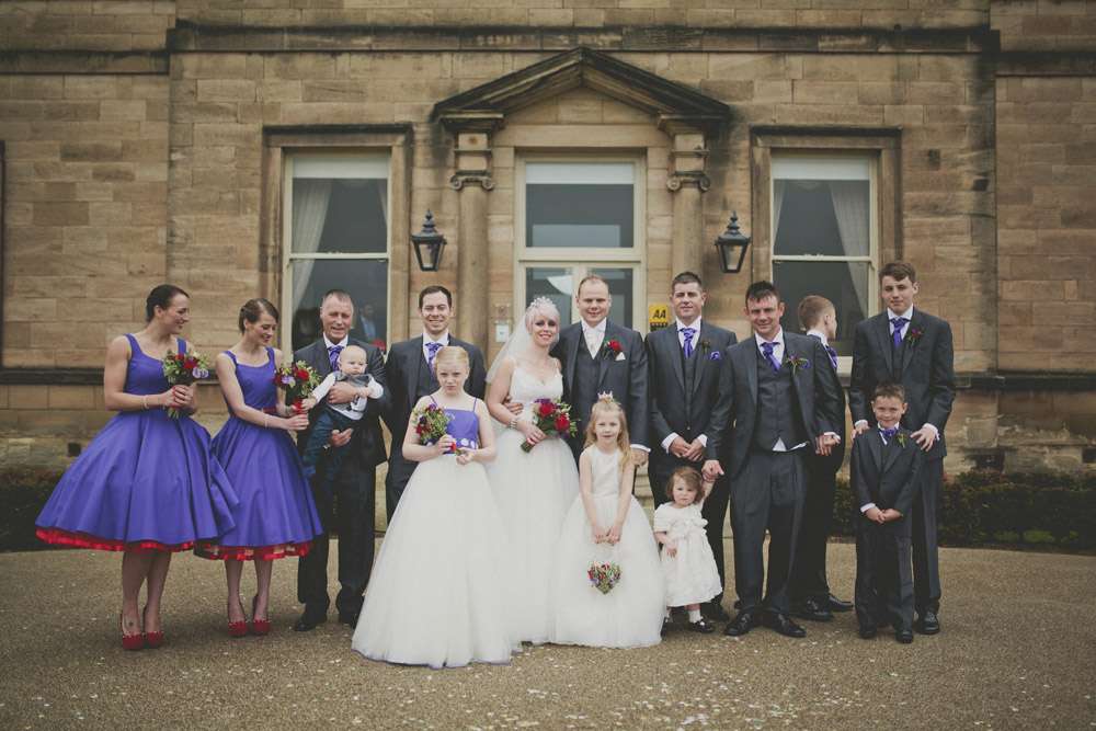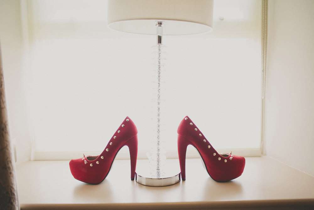 “I also bought studded shoes for me and the bridesmaids too. Danny thought I was mad but I wanted to show something of my personality and I was really pleased with how it all looked together. I knew what I wanted as the bridesmaids dresses but couldn’t find anything suitably unusual anywhere. In the end I bought a 1950s Vogue pattern from eBay and had the dresses handmade. Everybody thought I was mad choosing red and purple as a colour theme too but it really worked. We also had a casino at the evening reception which was really fun.”