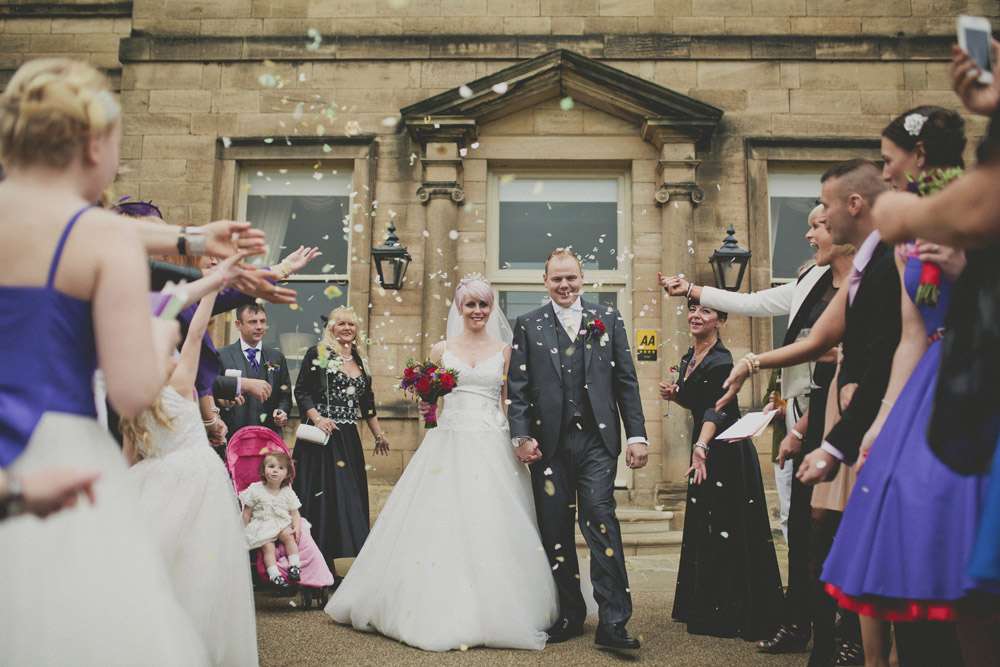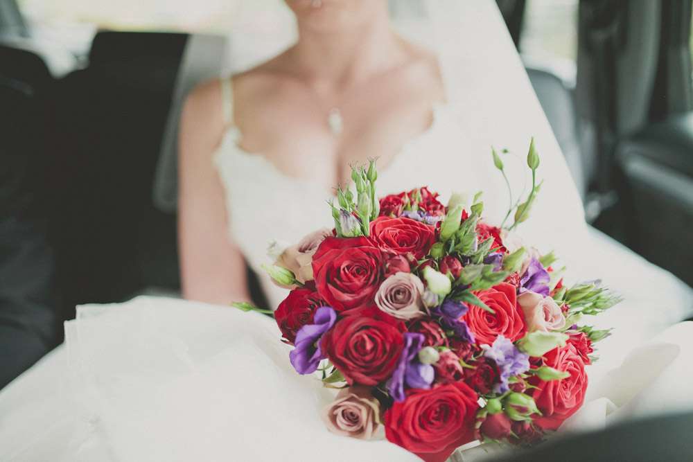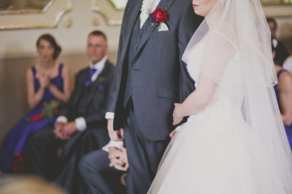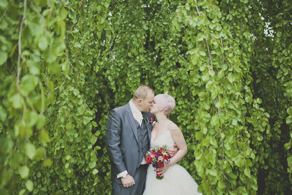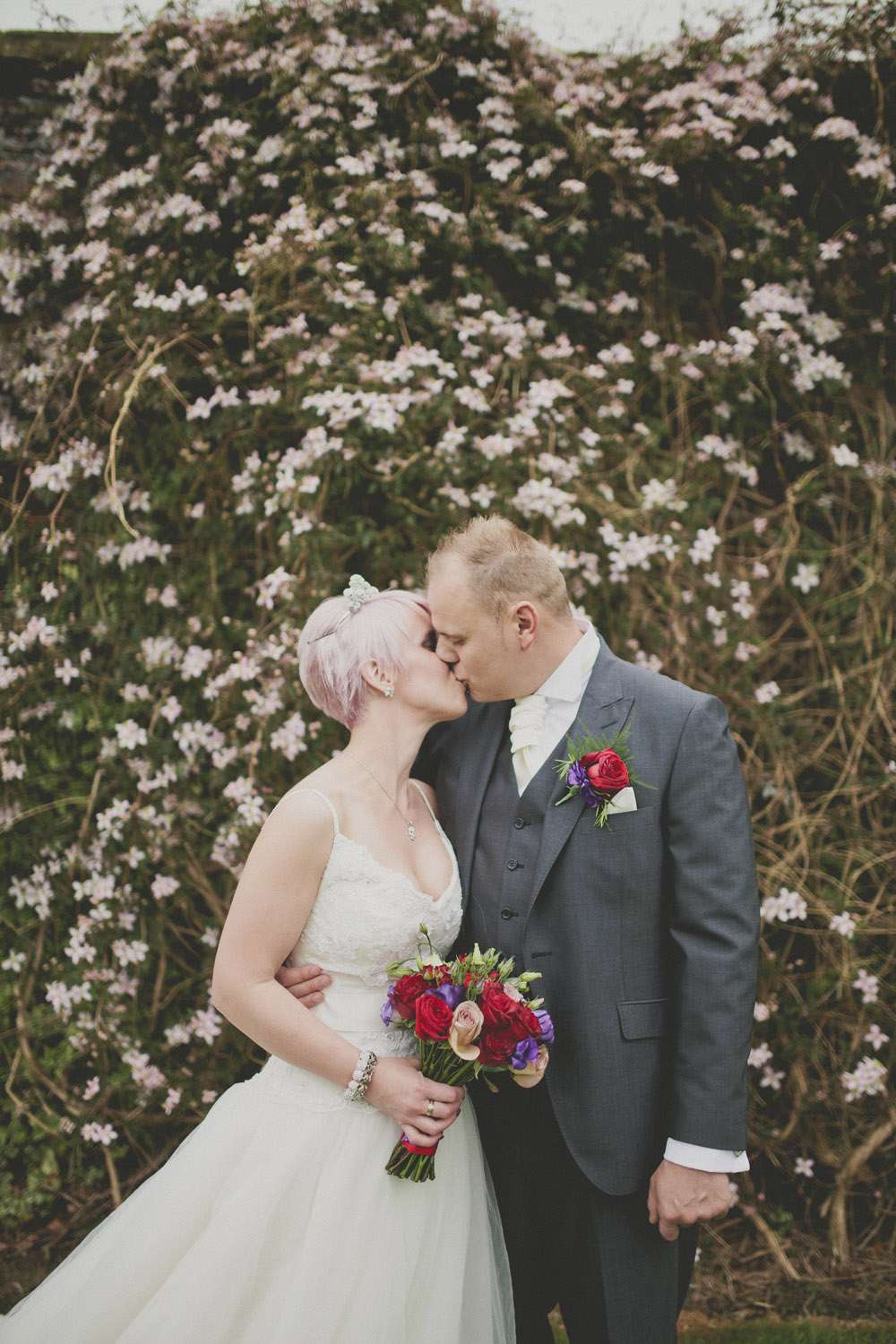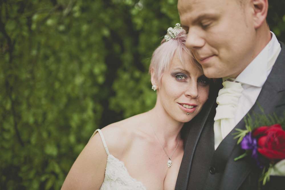 Danny and Victoria didn’t have a grand plan or theme in mind for their wedding. They started with the colours red and purple and then simply picked things they liked – luckily it all came together brilliantly. The bride even dyed her hair purple to match!