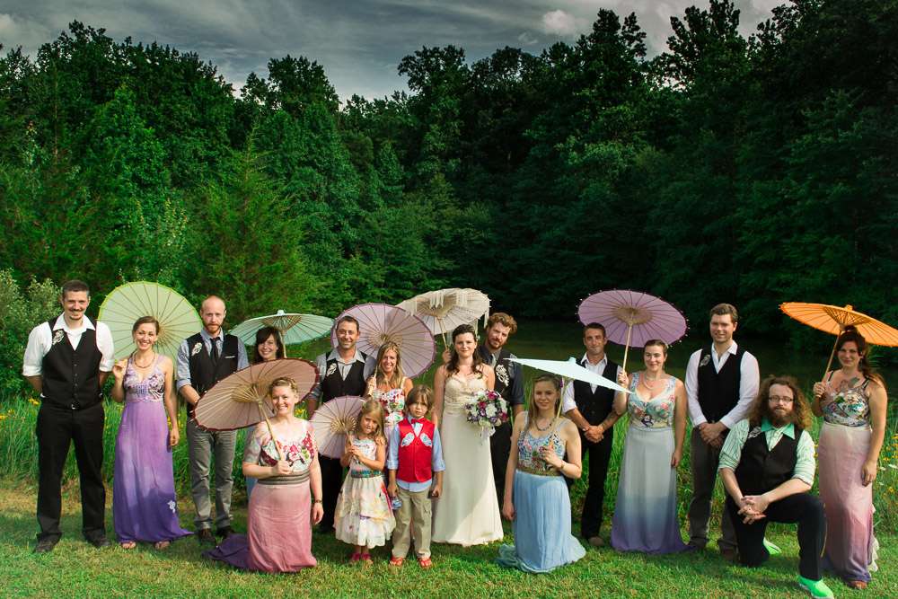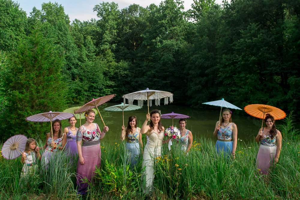 “The whole day there was this magical feeling of really strong love there that day that several people commented on”, she concluded. “Everyone seemed to walk around in the state of a trance as if they were having a really.good.time. Even my most conservative guests seemed to enjoy it, even the non-traditional ceremony entering in our parade-like fashion with our self-uniting vows. Our friends and guests certainly made our day unique with their special skills and talents, and because the band was so interactive and never in one place the party kept moving and was very alive. I wish I could do it again.”
