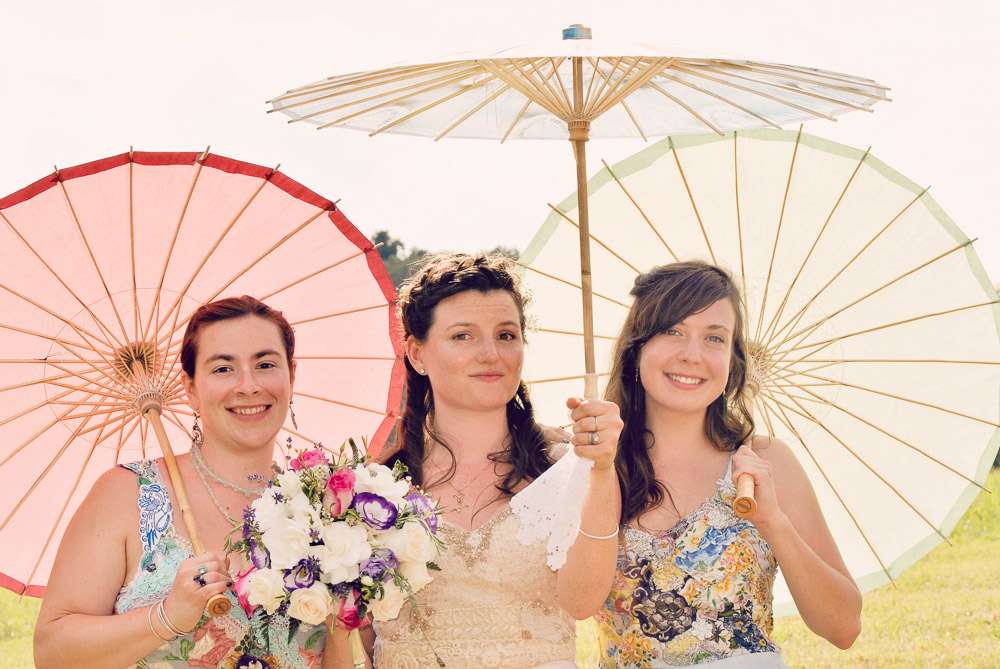 This wedding was full on DIY with the bride and her helpers making everything from the decor items to the clothes. Lauren made her own wedding dress from vintage and upcycled materials and the bridesmaid’s dresses were made using hand dyed vintage handkerchiefs which matched the invitations.