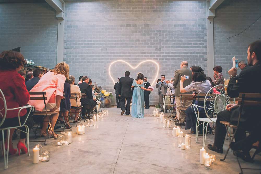“We wanted an informal wedding in a place where we could be really comfortable”, began the bride. “We didn’t want the traditional banquet with all people sitting in a table, we want a cocktail style party. Sergio also wanted to play with his band. After going over a lot of options, we decided that a warehouse would be the best place for us as we could really put our own stamp on it. The décor was all related to a theme of electricity.”