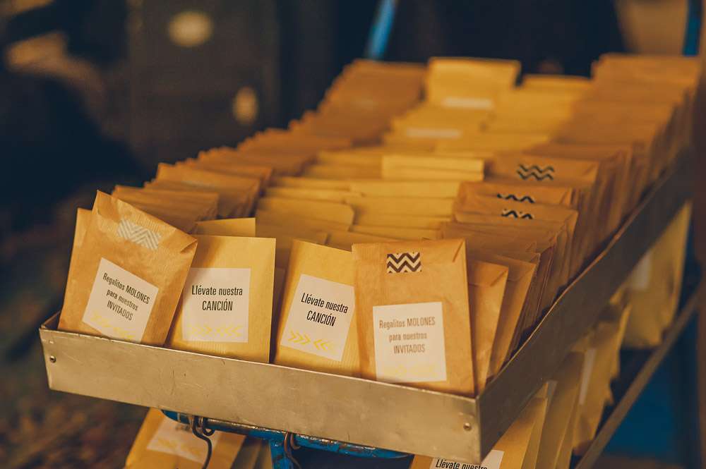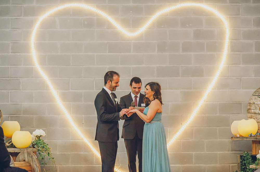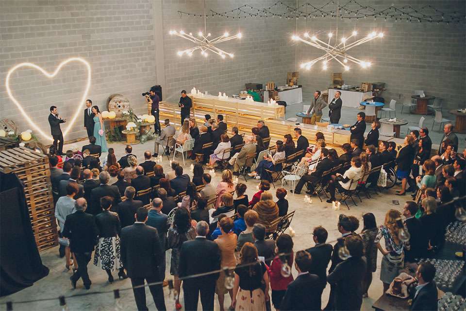 Bego and Sergio wanted a non-traditional wedding that didn’t cost a fortune. They wanted their day to be fun and informal, and for their guests to have a really great time. The venue was a warehouse and they had a subtle theme of electricity and lights with their DIY décor items.