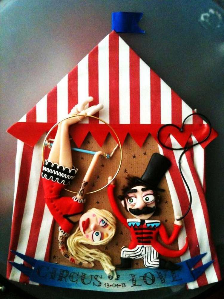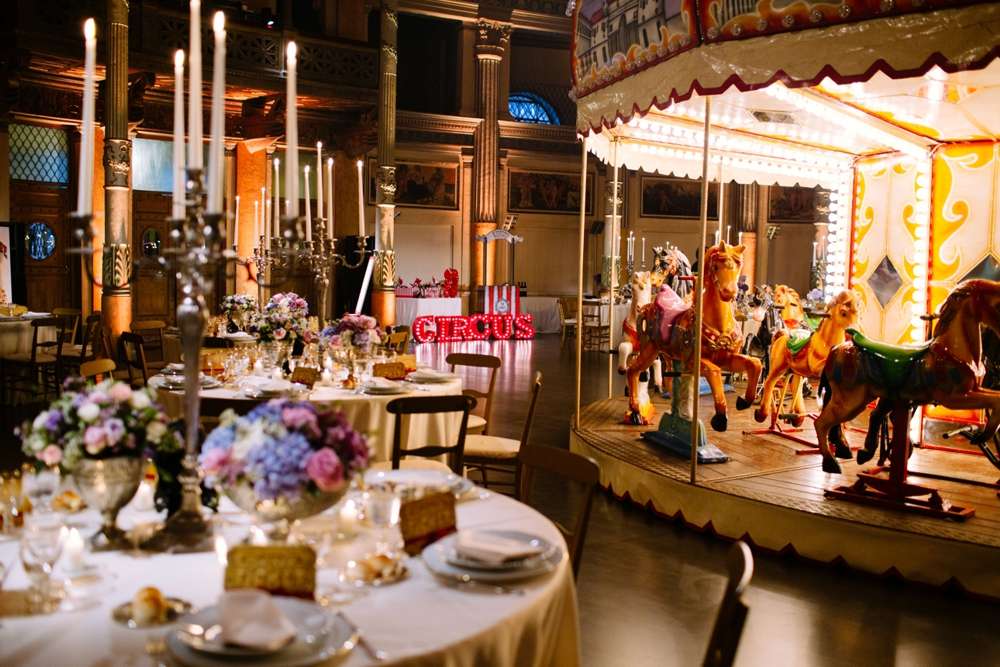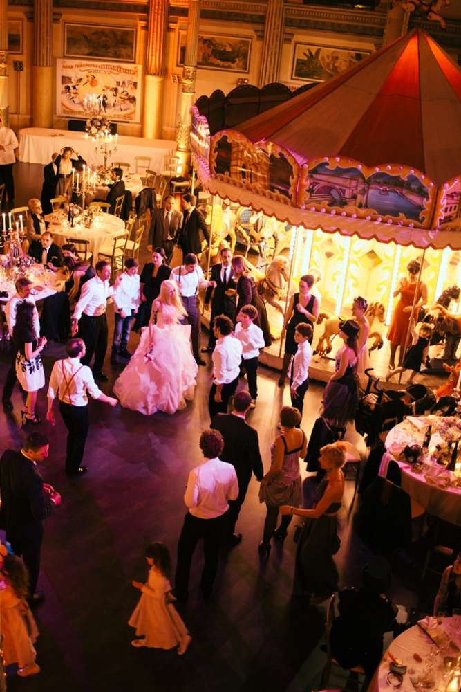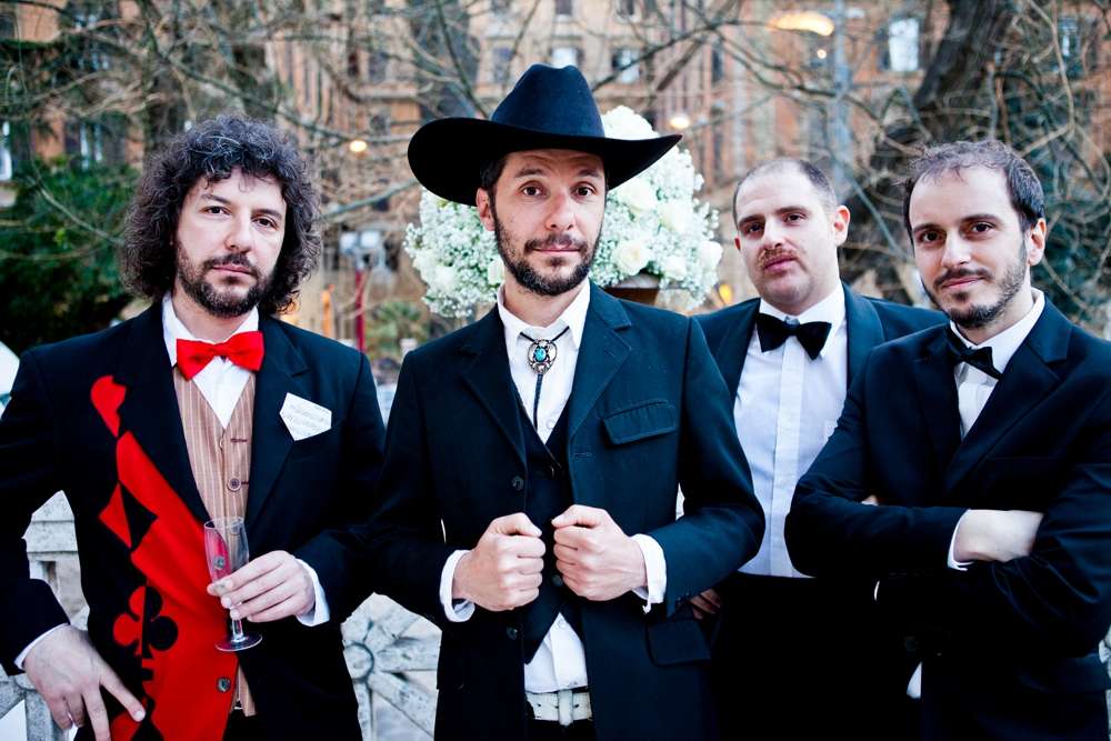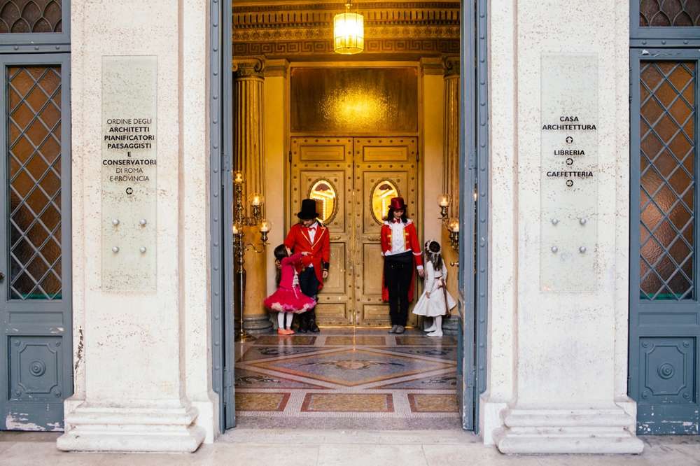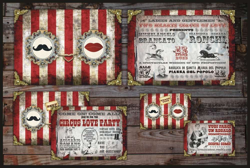“We love vintage images of artists and we love vintage images of circuses. In fact we feel like our life is like one bit circus so this theme was perfect for us! We wanted a wedding that was like us, with our energy, with our irony and with a few little freaky things (again, just like us!) We originally thought about having the party in a circus tent but we really wanted to do something more different still. We spoke to the Casa dell’Architettura, a gorgeous historical place in Rome, but it NEVER been used as a location for a wedding. There is a historic garden there and the ruins of the ancient Roman aquarium! We told them about our ideas and what we wanted for our wedding. We told them we wanted to bring in an authentic antique carousel… and to our surprise they said yes!”