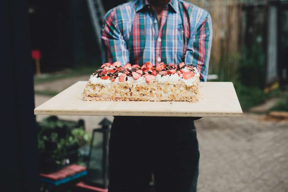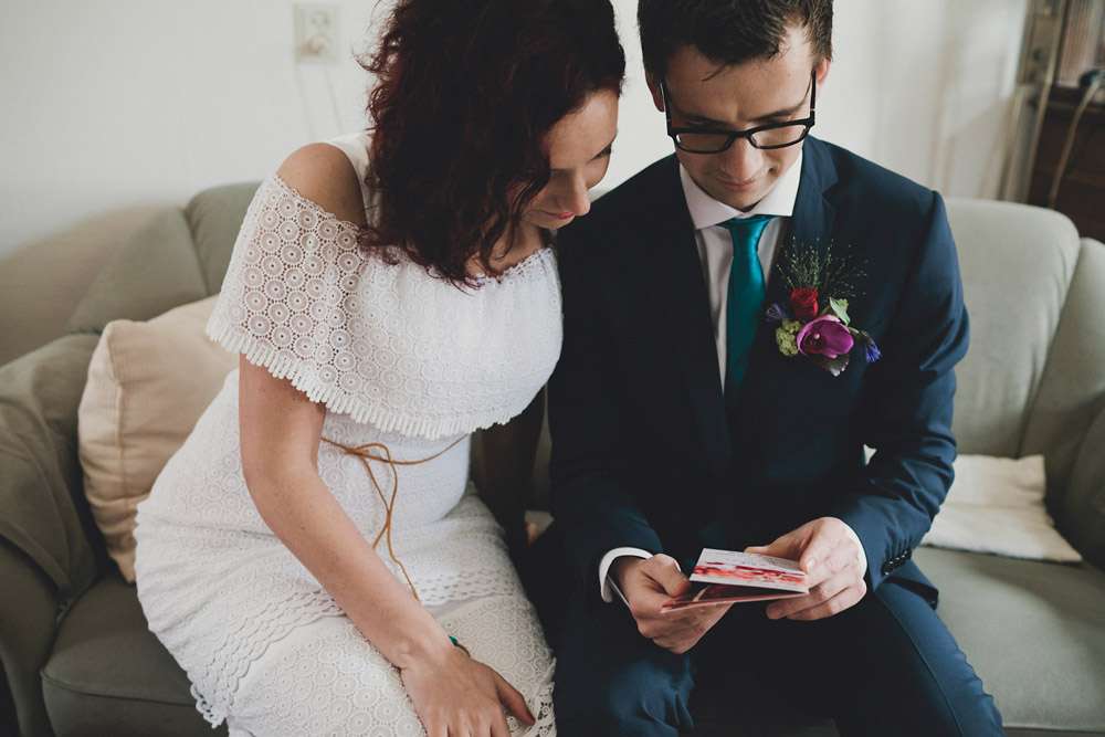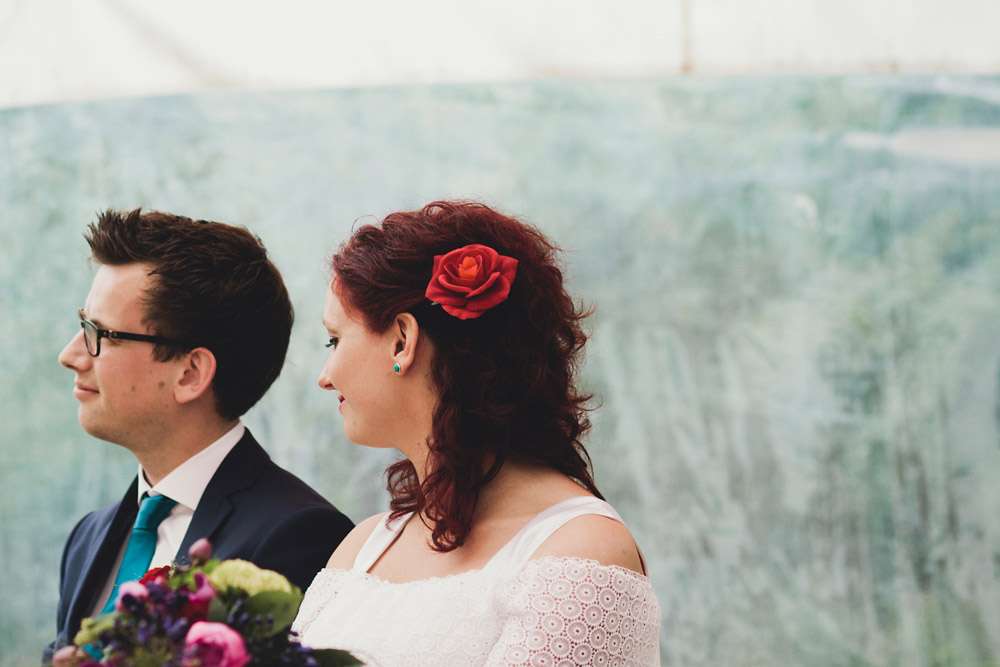 “We tried to make our wedding as personal as possible, with our own camper, a choir of 30 family members in the church and the band from the cafe where we met each other”, explained the bride. “We had our ceremony in a garden and afterwards had a simple but delicious meal at a not too fancy but very cosy restaurant. We didn’t want anything to be too cliché, we just tried to make it simple but very personal. A lot of our retro bohemian hippie kind of taste came through too, as well as our love for nature and being outside.”