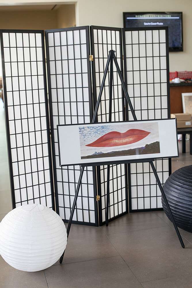 “The lack of flowers was extremely unique and very cost effective. The ostrich feathers added flair and the over all monochromatic scheme of the table was clean and eye catching. Everything was completely white on the tables where our guests sat. The sweetheart table where we sat at was all black and instead of having a surrealist artist, it was the ‘Freud Table’.”