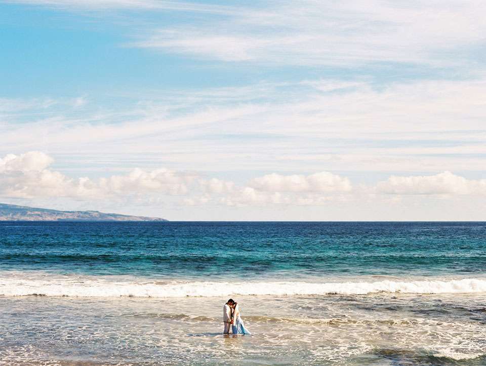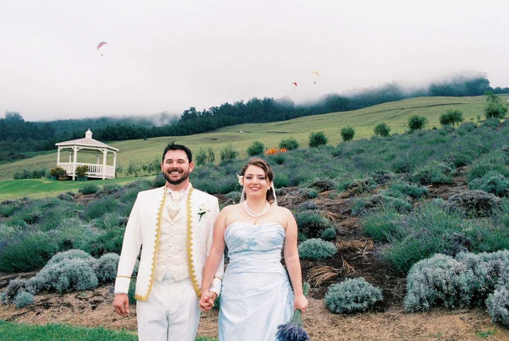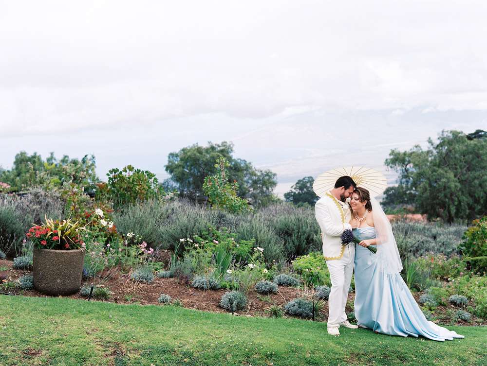 Marina & Phil wanted a small and intimate destination wedding in Maui. They love to travel and adore the water so a ceremony at Ali’i Kula Lavender Farm followed by an after dinner boat cruise was perfect! “We love the outdoors”, Marina wrote. “In particular, we love picnics with a great view. That’s what we ended up doing – a wonderful picnic on a mountain on a tropical island. We laugh that we could not decide whether to get married on a mountain or on a tropical island, so did both. We also decided to have our wedding on the 4th of July because we wanted fireworks!”