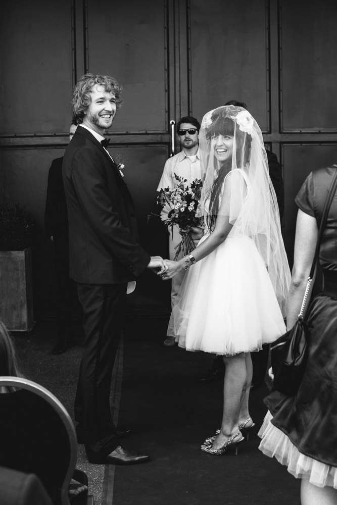 People who submit their weddings to me often describe the theme as ‘them’ – a collection of things that they love or that they feel represent them as a couple. Amanda and Andre, who were married in Cologne, Germany, were no different. “We had some Rock n Roll, lots of colour and a slight industrial vibe for our wedding”, Amanda explained. “Our wedding was held in the middle of Cologne central market at ‘Alte Versteigerungshalle‘ which means Old Auction House. It was difficult to find a venue that was outside of the norm. We didn’t want a farm, a castle or a hotel. Because of the lack of alternatives we picked somewhere that we could make our own and decorate ourselves.”