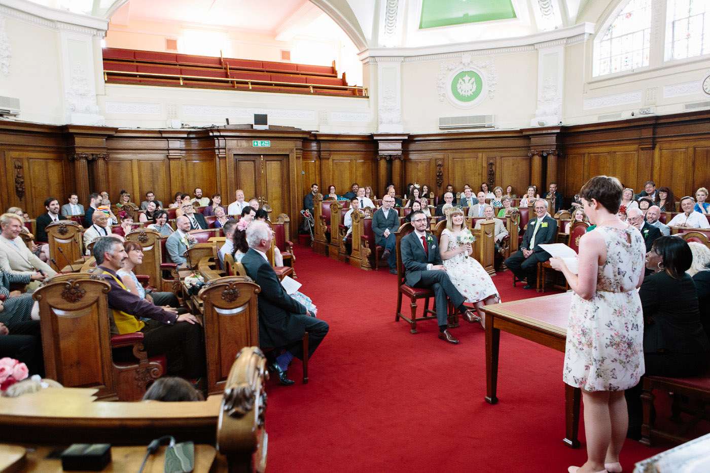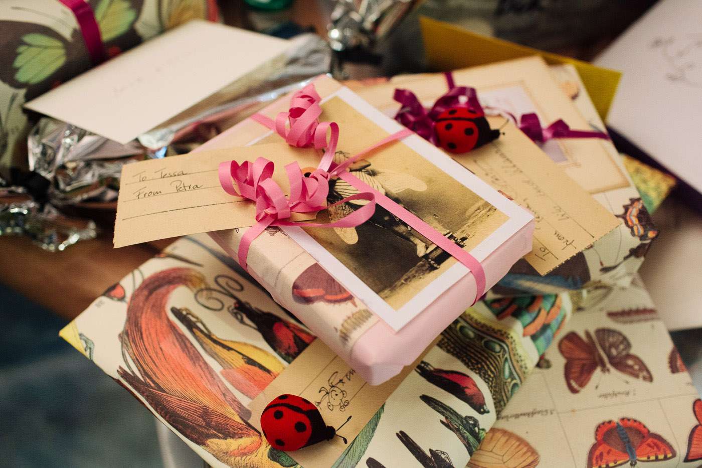 “The bridesmaids carried taxidermy ducklings, and my Dad wore one in his suit pocket. These were a last minute addition, a present (a box of about 20) from Tony who so kindly loaned us his beautiful car. While I waited nervously in a meeting room with the girls, they played with the ducklings, quickly named then and decided to incorporate them into their bridesmaid attire. We tried various positions (on their heads, in the bouquets etc) but decided upon their hands. We encouraged our guests to embrace the theme, though didn’t want to dictate a fancy dress code, but many people wore insects in one way or another.”