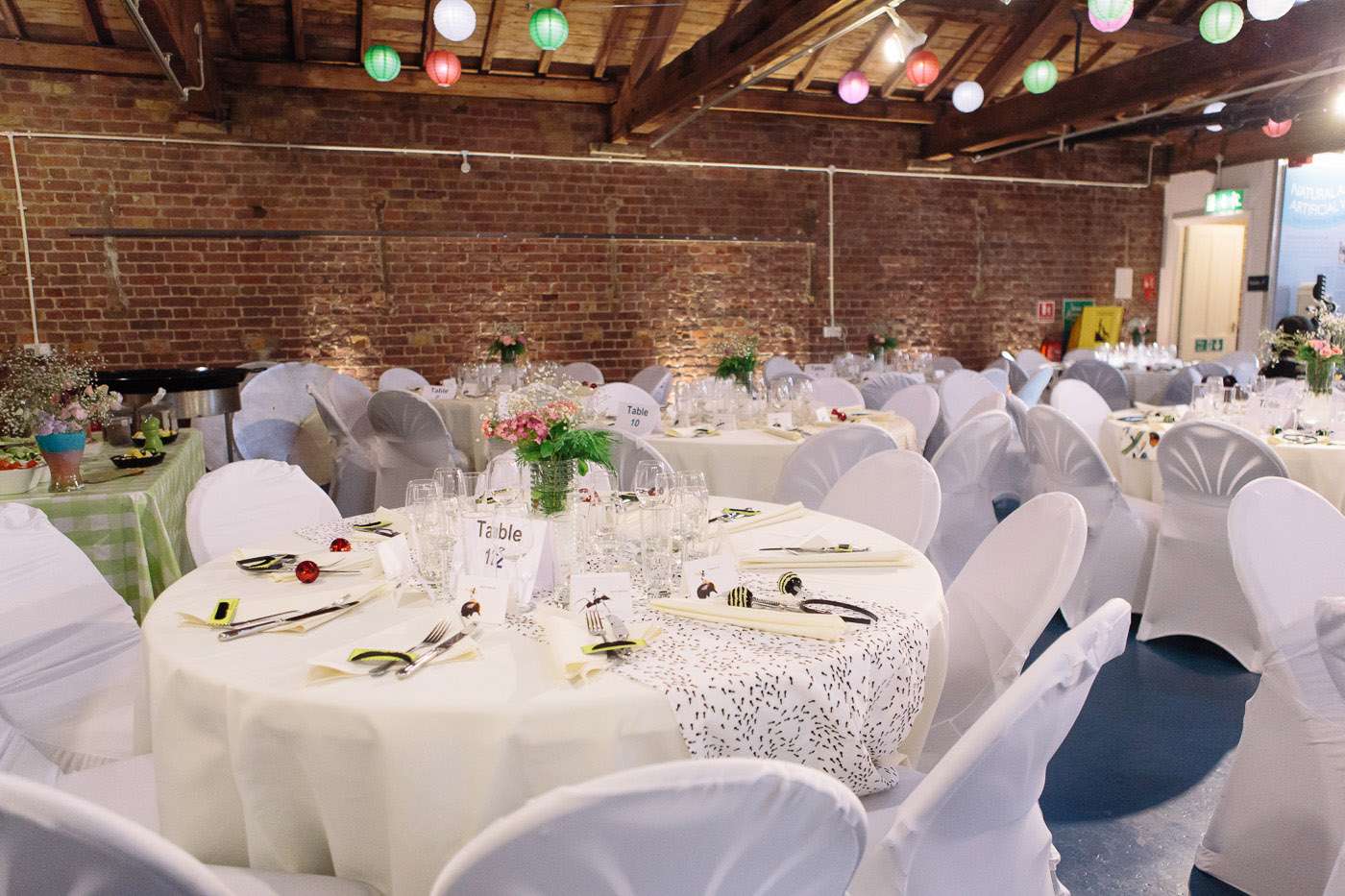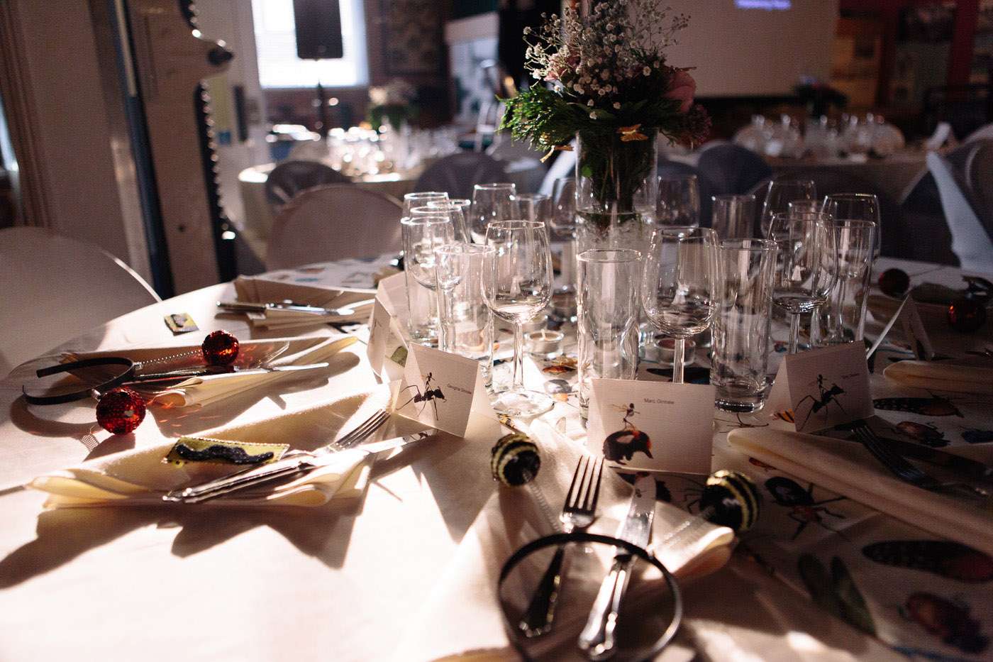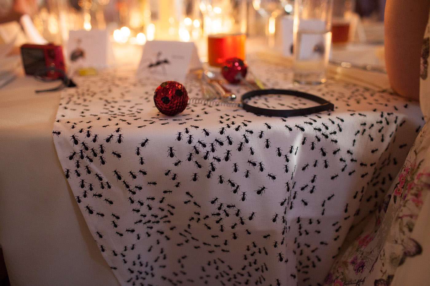 “Our wedding theme was entomological – inspired by insects!”, explained Tessa. “It probably seems a bit weird to have an insect inspired wedding, but it seemed fairly normal to Matt and I. I don’t think anyone was particularly surprised. I’ve been using insects in my sculptures for many years and am pretty obsessed with them… this has rubbed off on Matt who has learned to love (i.e. tolerate) my collections of dead things too. I always thought I’d get married dressed as a wasp (my favourite insect), and Matt already has a pretty convincing fly costume but when it came to it I wanted to look like a bride, not a giant wasp.”