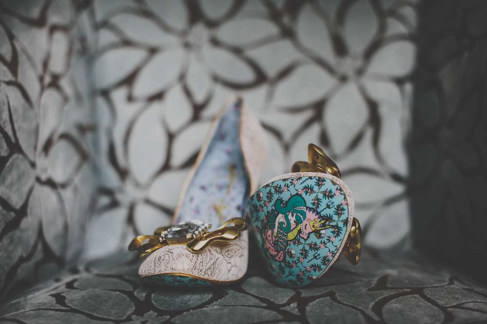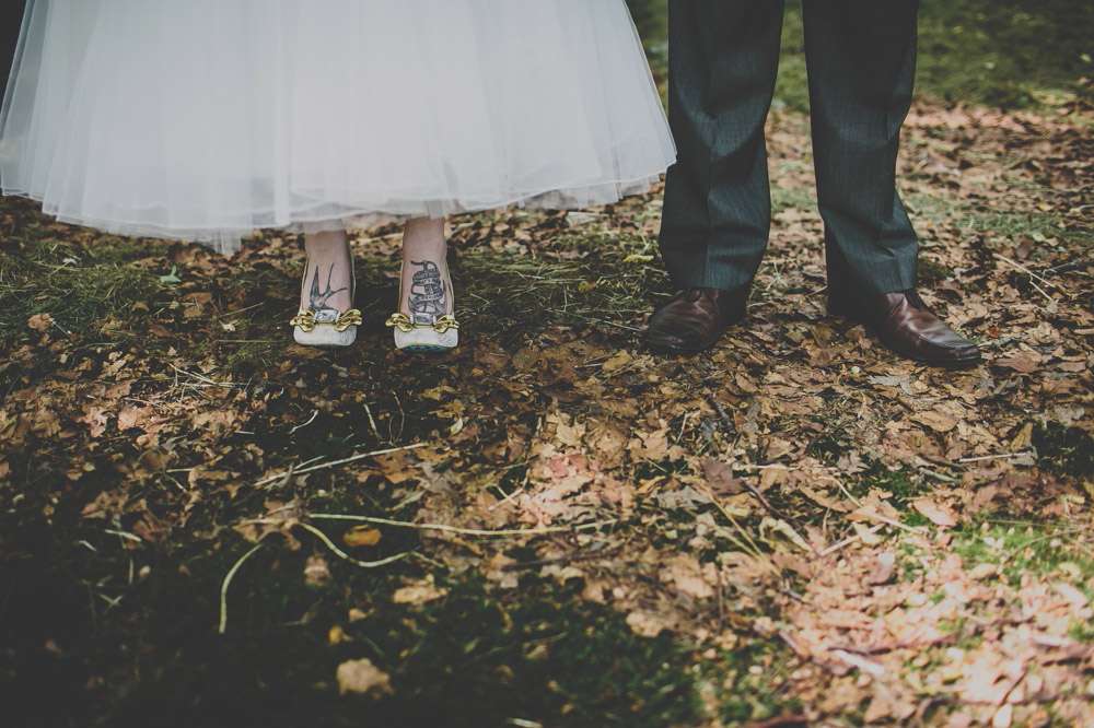 Kat wore a short dress by Justin Alexander and two pairs of shoes, the first from Irregular Choice and the second Melissa for Vivienne Westwood. “I tried my dress on for the first time in April 2012”, she explained. “I knew that I didn’t want a full length dress from day one for both practical and aesthetic reasons. I wanted to be able to pee without taking an entourage to the ladies with me, I wanted to be able to dance, I wanted to show off my tattoos and I wanted an excuse to buy some killer shoes. Style 8555 from Justin Alexander was the only one I fell in love with. I’m a sucker for lace and the tulle ballerina skirt sat perfectly above my ankles.”