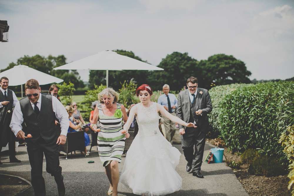 “At our reception we created an informal, summer party atmosphere by hiring lots of vintage games from Matt and Annabel (our gramophone DJs). We both had an amazing time splatting rats, hooking ducks and throwing coconuts with our friends and family! It was great to see how involved everybody was and how competitive some people became over the egg and spoon race.”