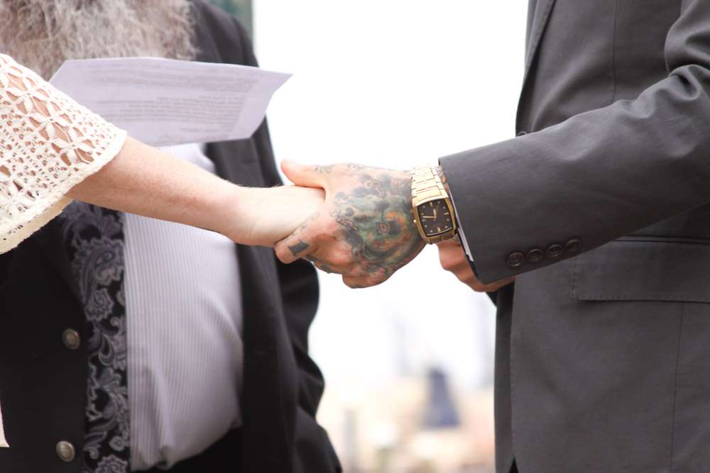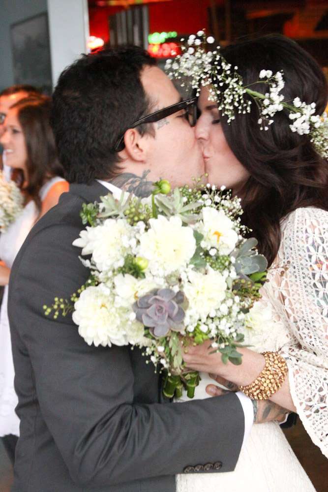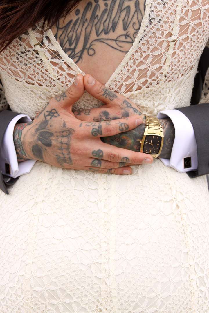 “I think everyone expected something more quirky than what we actually had,” began the bride. “We live a very unique life everyday so we wanted something a little more unexpected and soft for our wedding. As the bride, I wanted the dress to compliment my style, rather than show off my tattoos. We wanted it to be classy and remembered.”