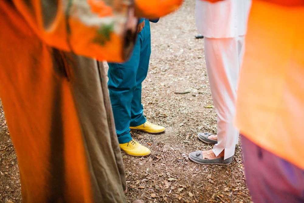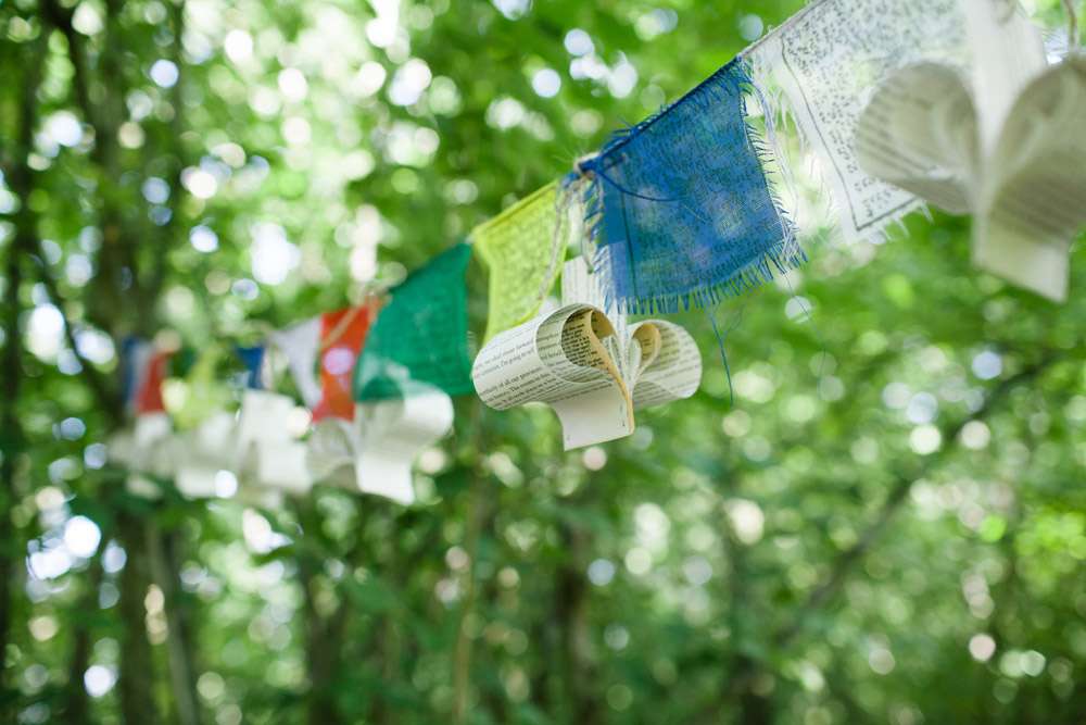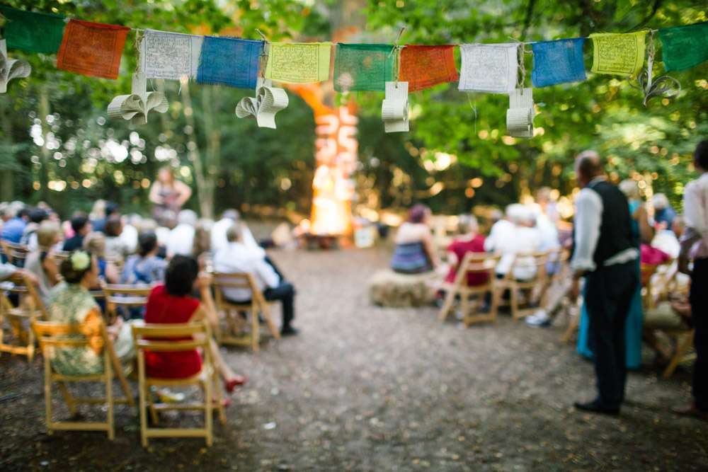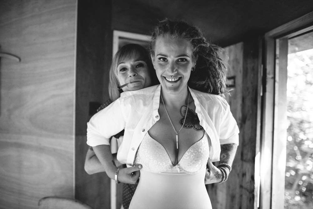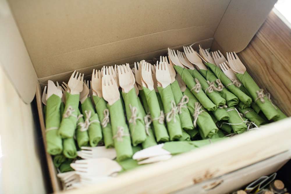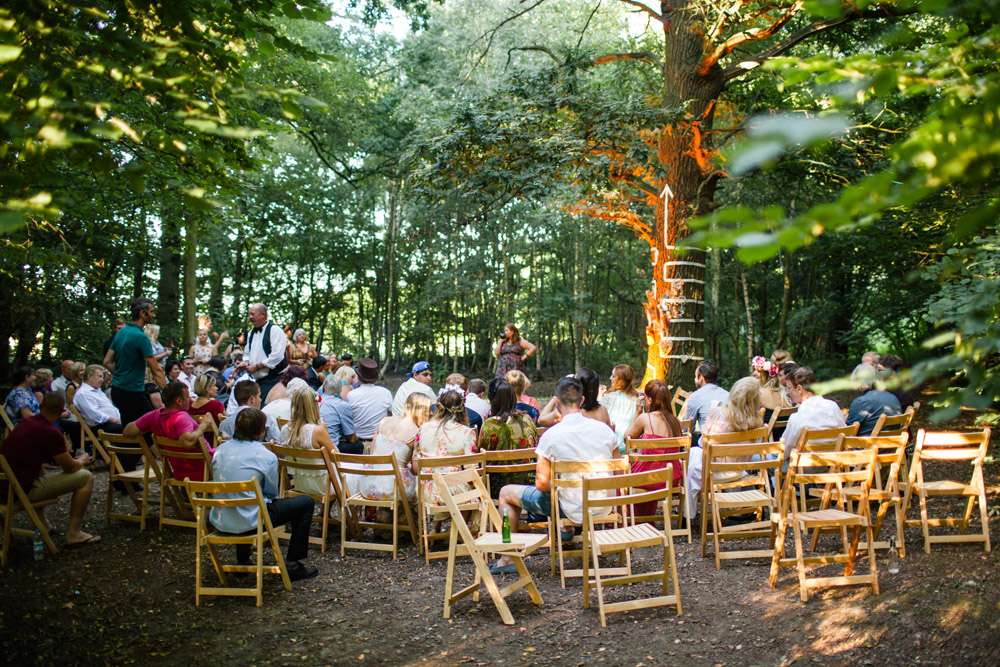 “We didn’t go out of our way to make our day different from the norm”, she continued, “we just went with what we both wanted and what felt right for us. I have always loved the forest and we both thought that that was the most beautiful place to take our vows. Neither of us are religious, in fact quite the opposite, so a church was certainly out of the question. Both of us love all things wooden so that also fitted in with the forest and our wedding rings. We served drinks out of jam jars and all flowers and decoration were homemade. Even our cutlery was made from banana leaves which added to the eco elements of the day.”