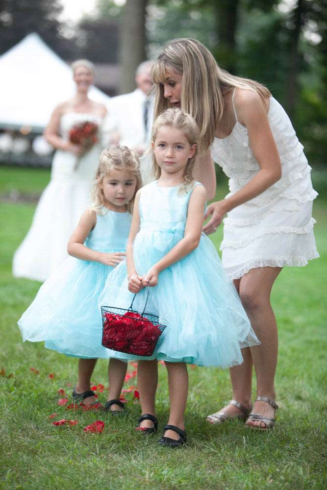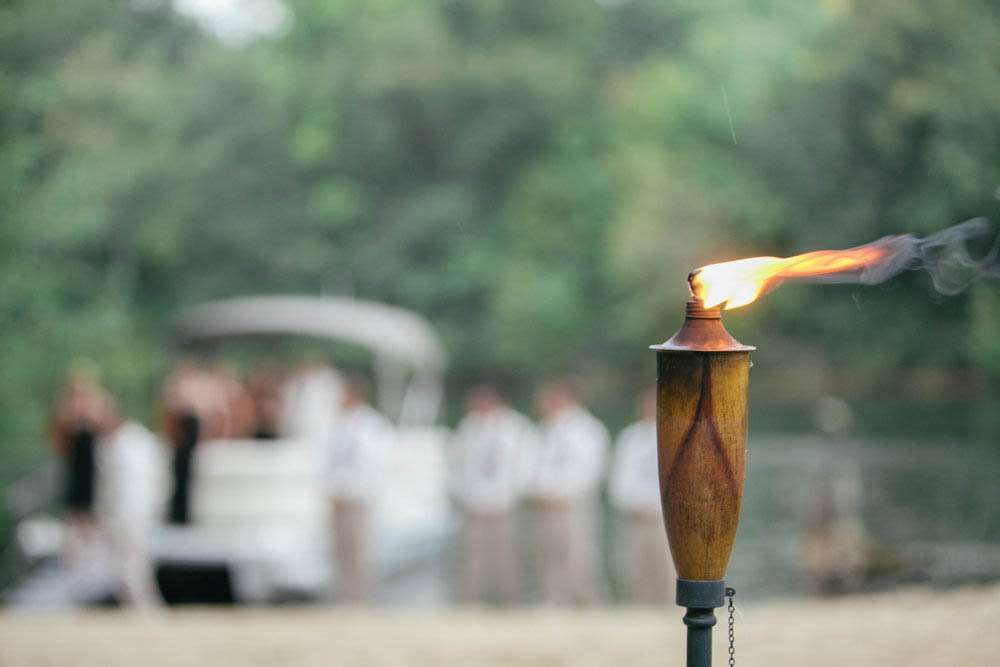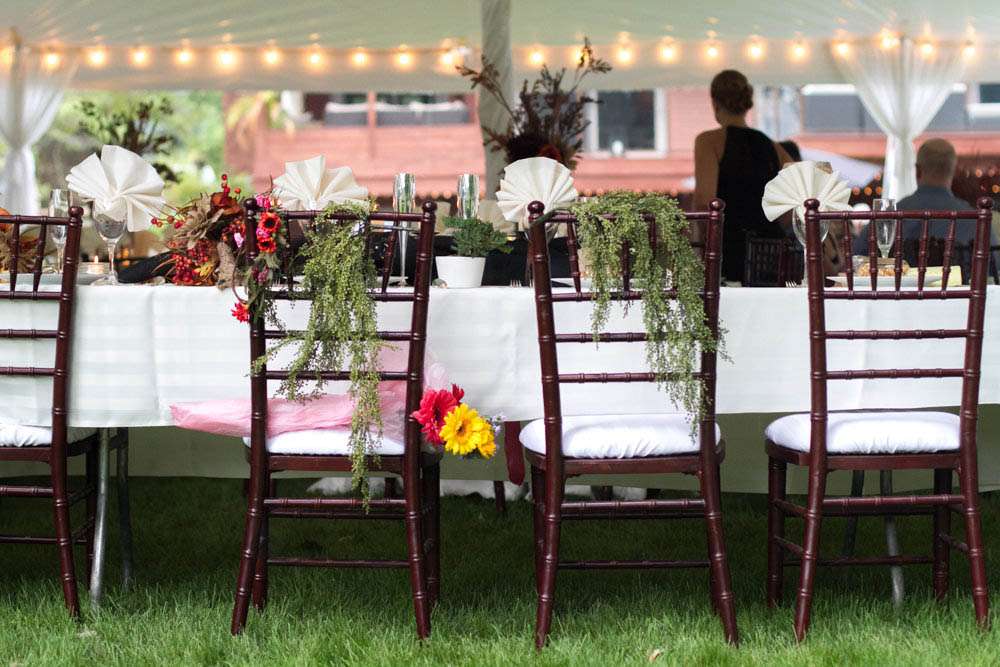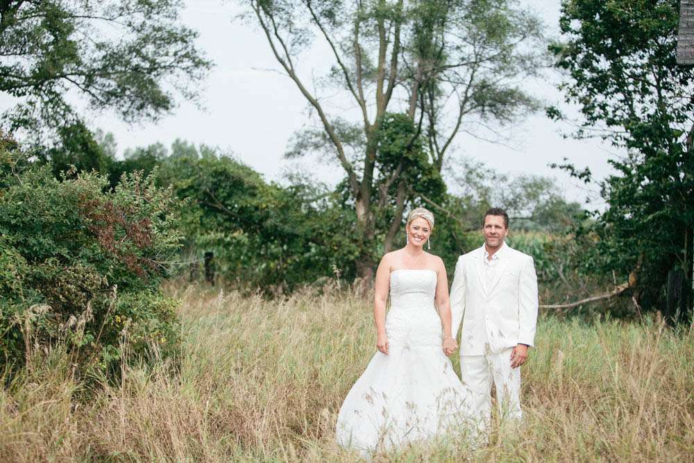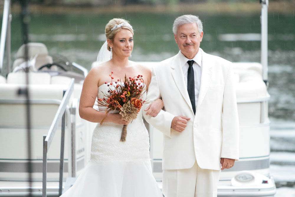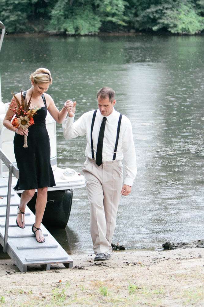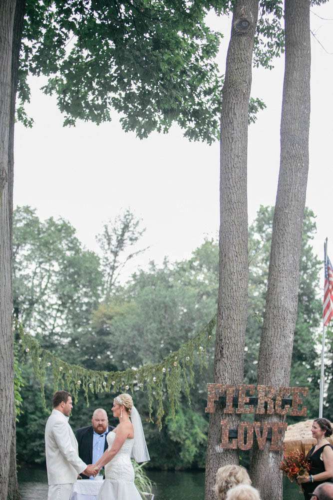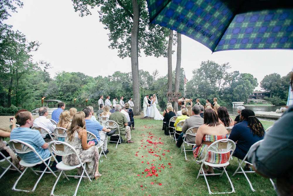 “We knew we wanted to have the wedding in my mom’s back yard on the river. Mark and I are very fortunate to have a close relationship with our family and consider their house our weekend vacation home, complete with a Tiki Bar! Mark first met my mom and stepdad at their house where my mom said, ‘he is the one,’ and so this location is very meaningful to us as a family.”
