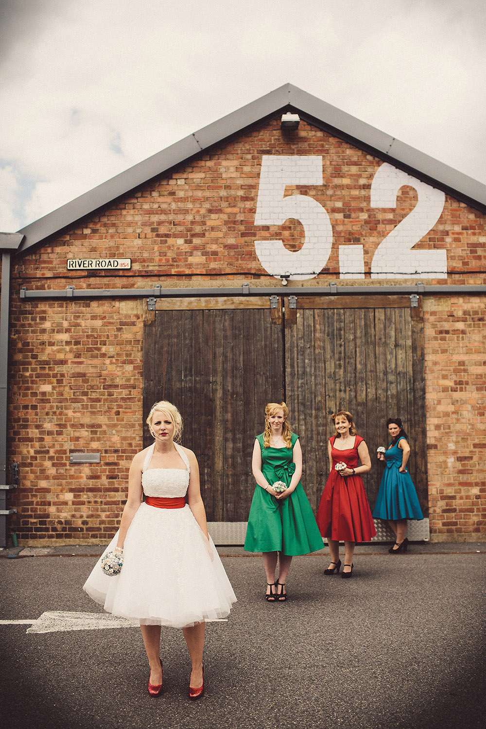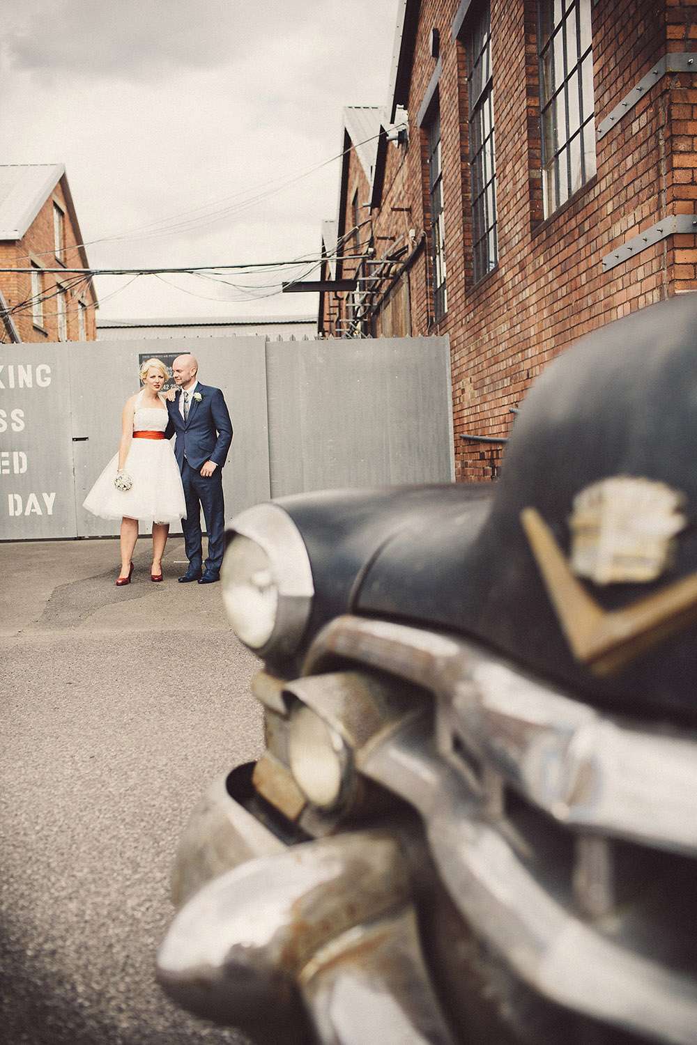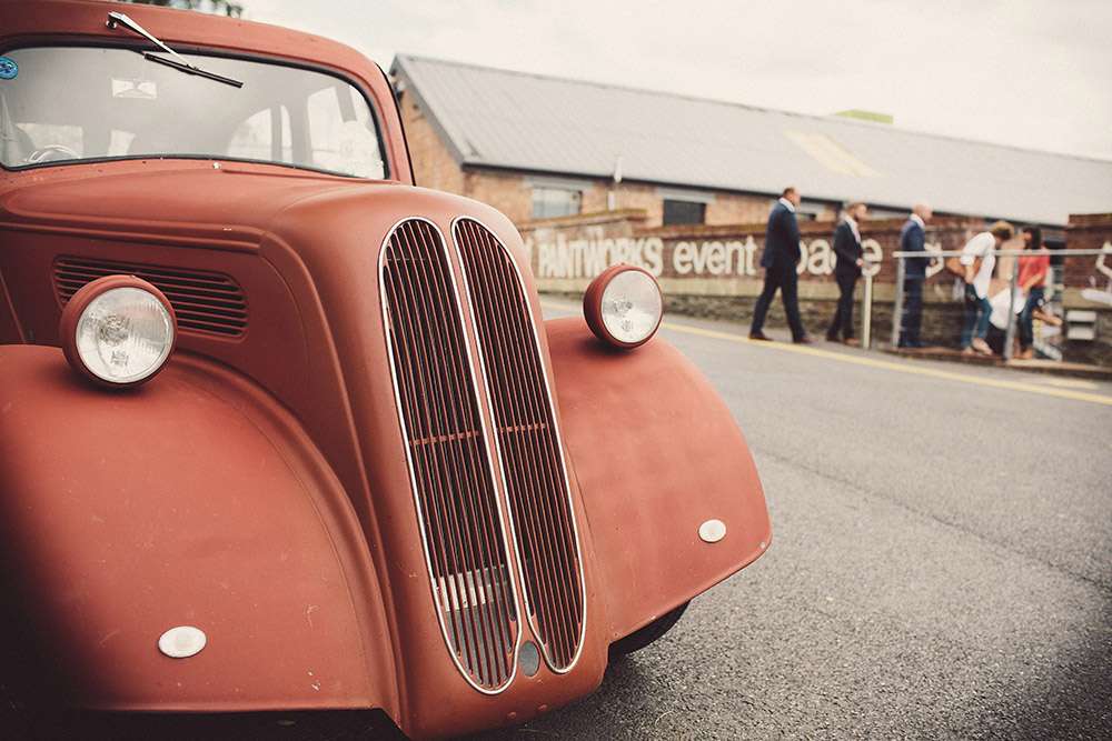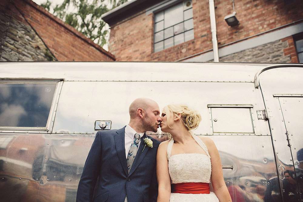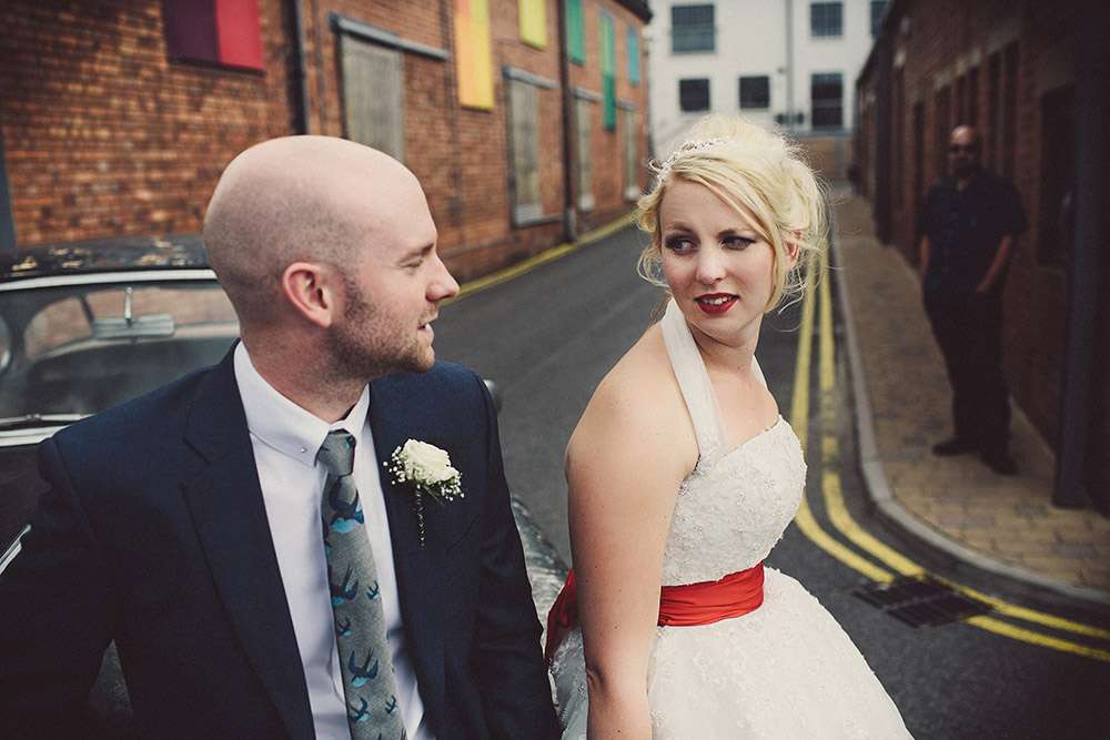 Abbie and Daniel were married at The Paintworks in Bristol, a converted industrial building in the city’s creative quarter. They didn’t set out to have a theme but the bride’s outfit was quite 50s, they served fish n chips and had an ice cream tricycle for desert, and they had a DJ who played only 90s music – so I guess you could say the wedding was all the things they liked!