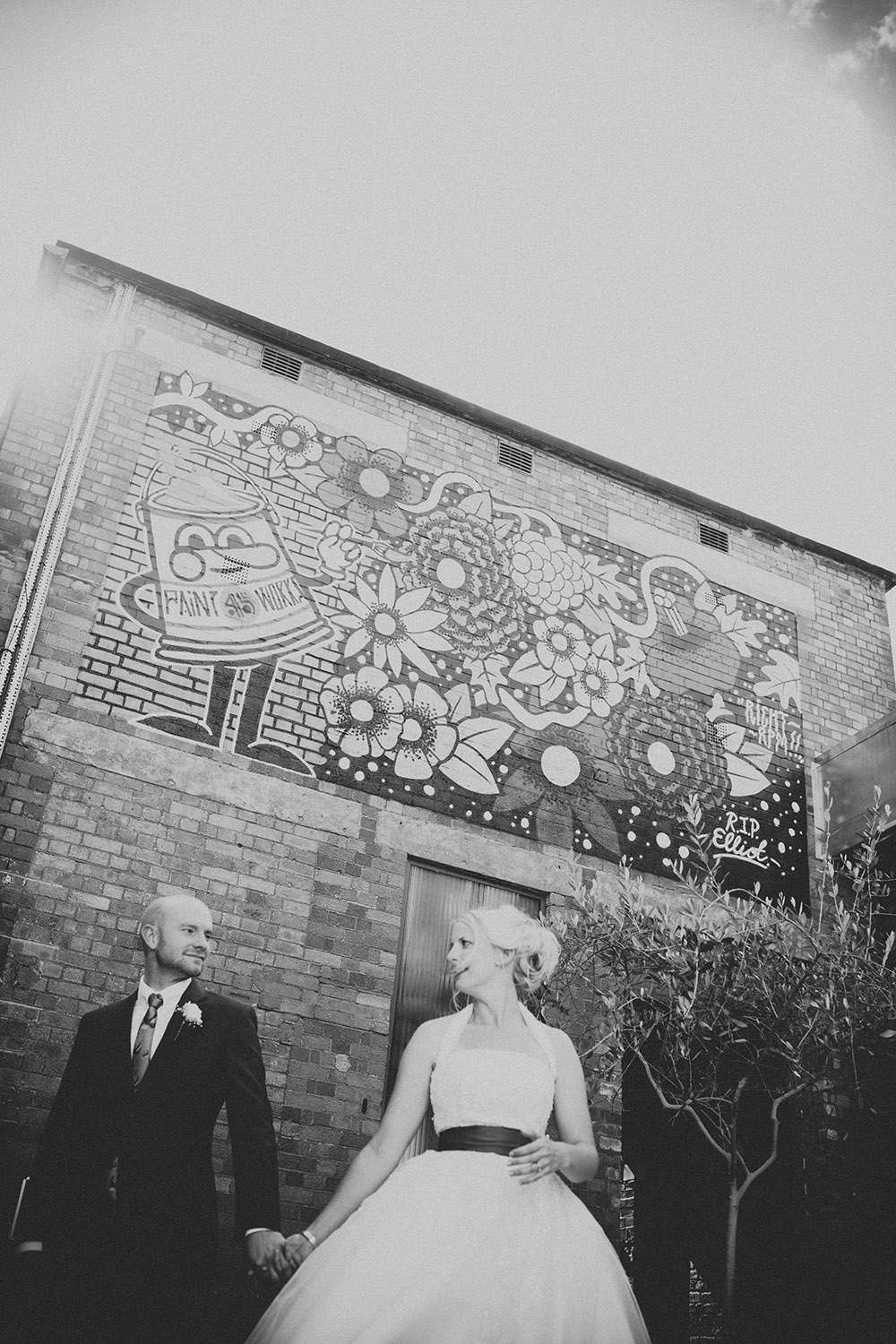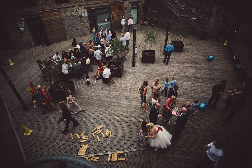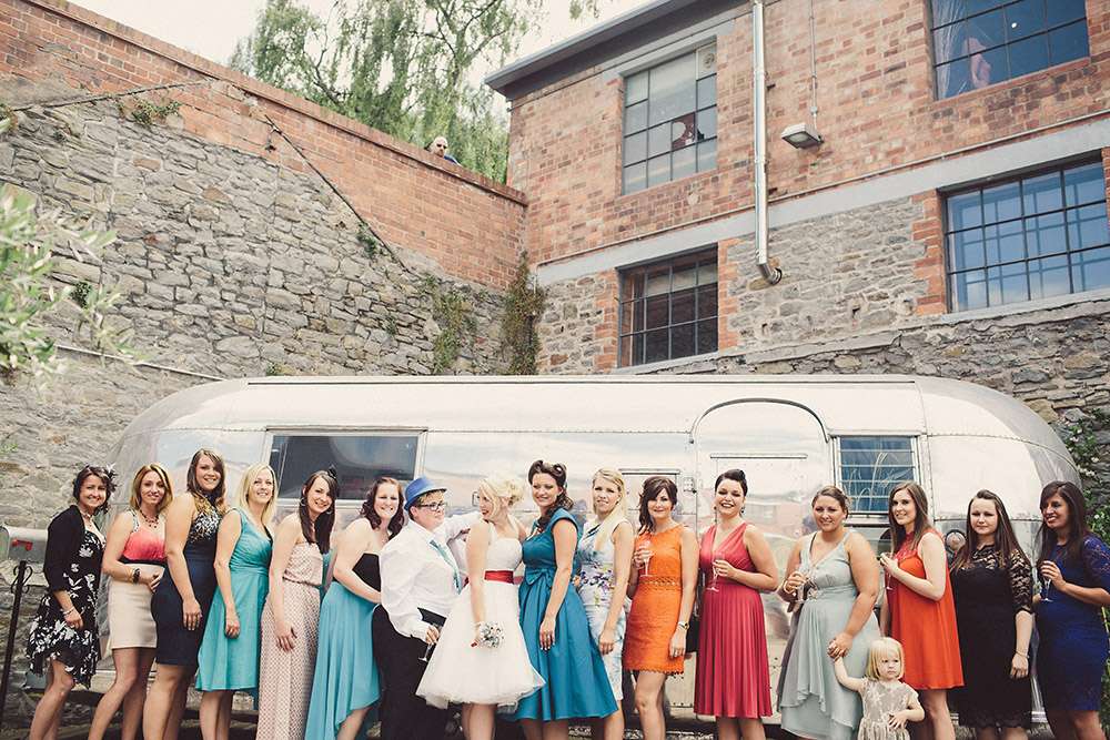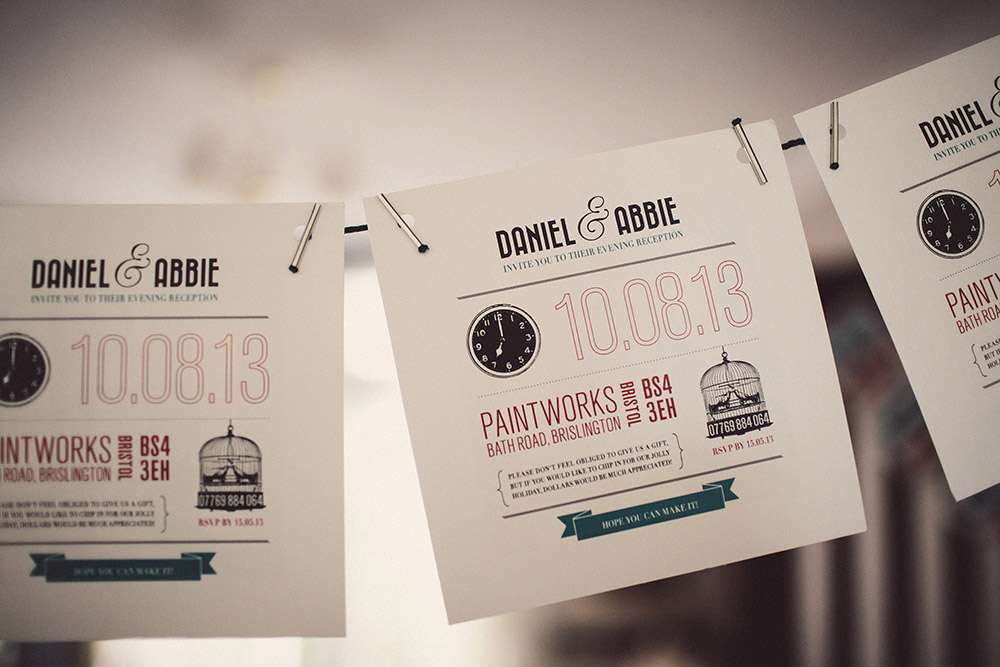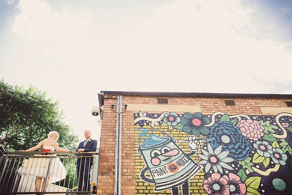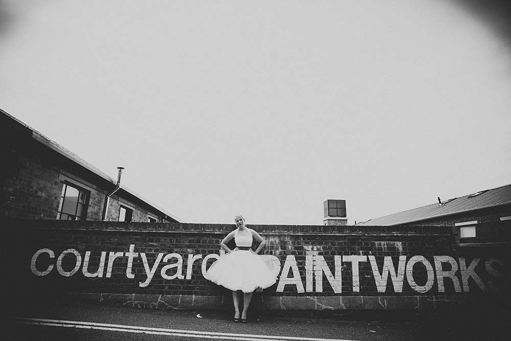 Abbie and Daniel were married at The Paintworks in Bristol, a converted industrial building in the city’s creative quarter. They didn’t set out to have a theme but the bride’s outfit was quite 50s, they served fish n chips and had an ice cream tricycle for desert, and they had a DJ who played only 90s music – so I guess you could say the wedding was all the things they liked!