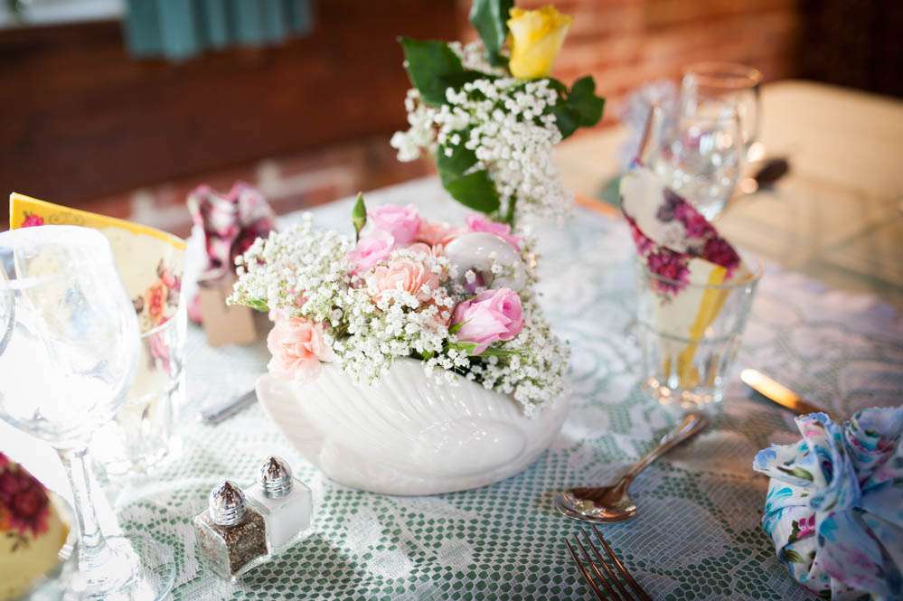 Jacqui wore a vintage dress from Elizabeth Avey with vintage shoes, jewellery and a veil. “I knew I would choose a vintage wedding dress but I wasn’t entirely sure what I wanted”, she explained. “All I had in mind was that I wanted a full length gown and probably in lace. I went along to Elizabeth Avey in North London and they had lots of beautiful vintage gowns to choose from. After trying a few I actually ended up buying the first one I had put on, a beautiful 1950s lace dress with a tiered train. The dress fitted perfectly apart from the sleeves which were a little (well a lot actually) on the tight side so my friend recommended Lindsay who specialises in vintage alterations and she did an amazing job of making them a perfect fit.”