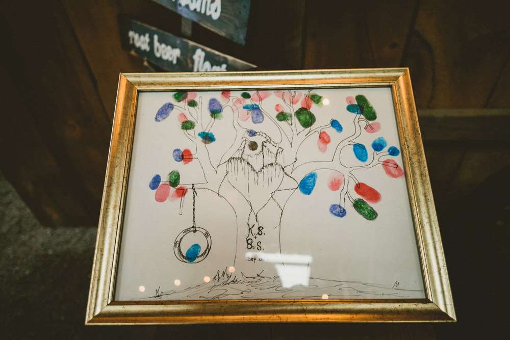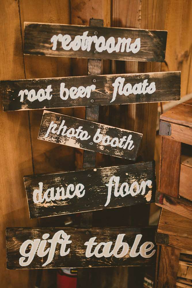 “A lot of our clothes and jewelry was handmade”, she continued. “We also made all the signs for the reception by getting some reverse lettering cut in vinyl from a local sign shop, sticking it to the sign, and painting over it. It made for clean edges and was pretty inexpensive.”