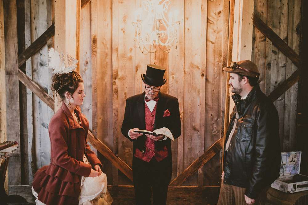 “Our wedding was an absolute dream come true”, began the bride. “It couldn’t have been more perfect. We think the Steampunk theme really defined the wedding. Our theme was inspired by the Wild West and our own imaginations. We both have wild imaginations and having a theme really let us run away with it.”