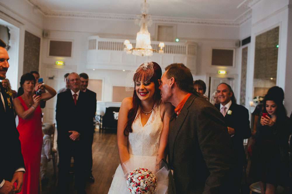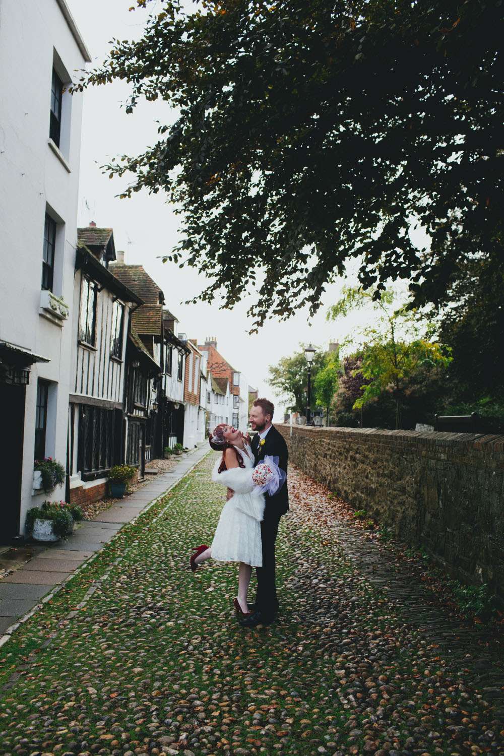 Abbie and Tristen were married at the iconic The George Hotel in Rye. They had a beautiful and alternative wedding, but one that didn’t break the bank. As the venue was so gorgeous already that they didn’t need to spend a fortune decorating it, a few stings of bunting and some homemade paper flowers and place names was just enough.