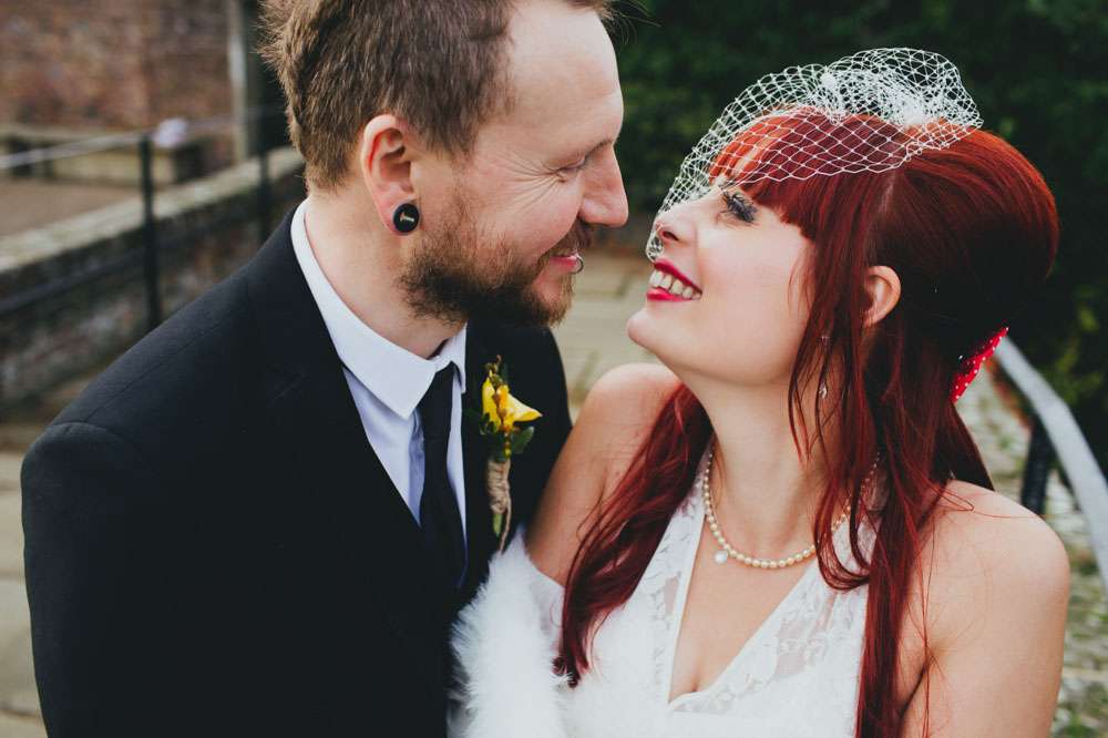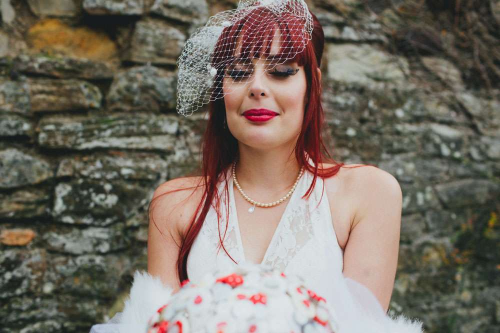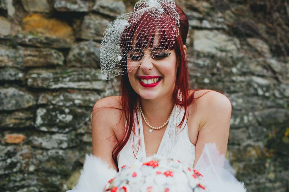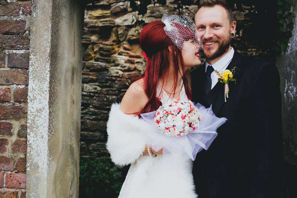 The bride bought most of her amazing outfit from eBay! Her dress set her back just £27, her headpiece was £7 and her shoes were a fiver! They also saved money by allowing their bridesmaids to wear whatever they liked, making and icing their own cake and constructing the bouquets themselves from flowers bought locally.