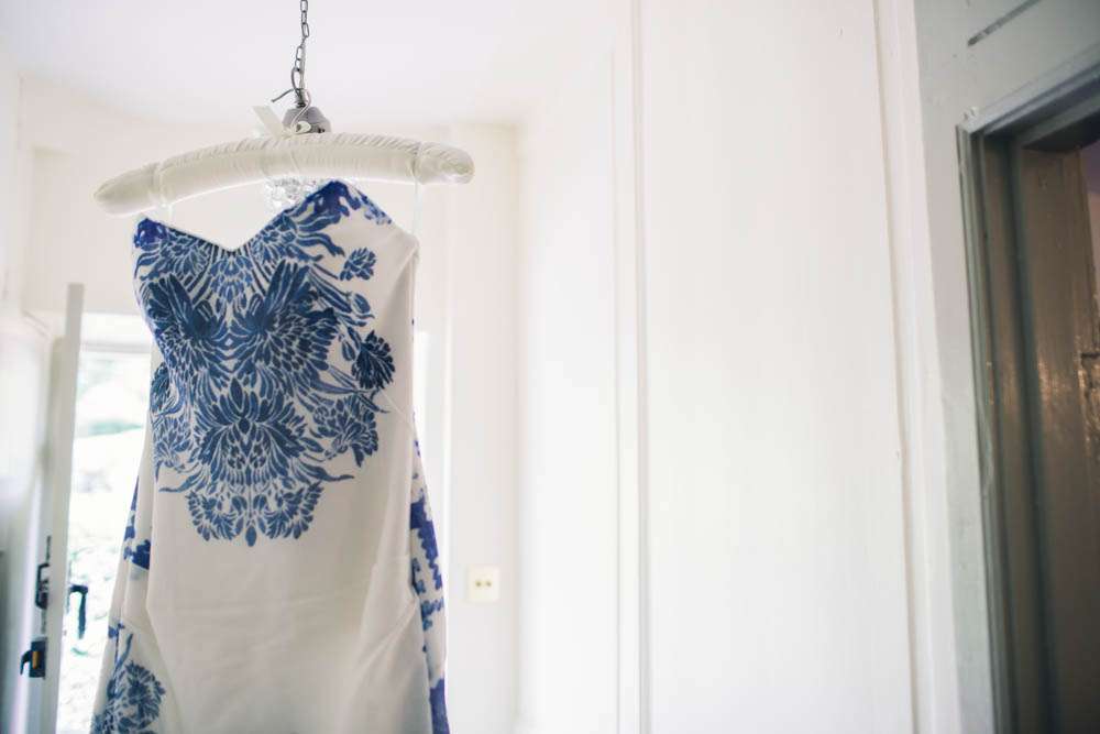 “After weeks spent ogling evening wear on Pinterest, I’d found the perfect shape for my dress, and the lovely Emma send me off to buy fabric. Not to be trusted in the slightest, I wandered into Liberty’s scarf department and fell in love with a giant silk number by Athena Procopiou. I sometimes wonder whether Emma still regrets saying, ‘Well it can’t be harder than working with lace…’ but a couple of months later I walked down the aisle in the most fantastic thing I’ll probably ever wear.”