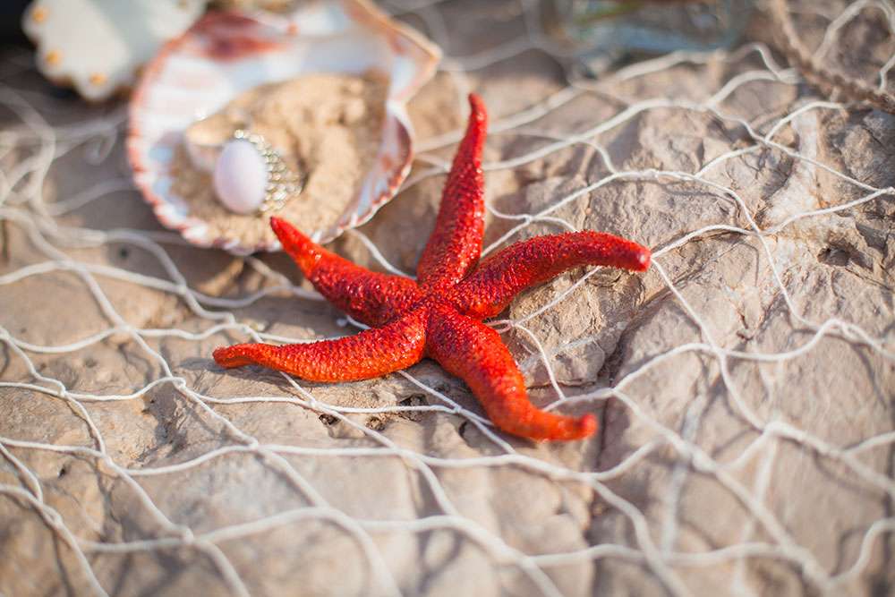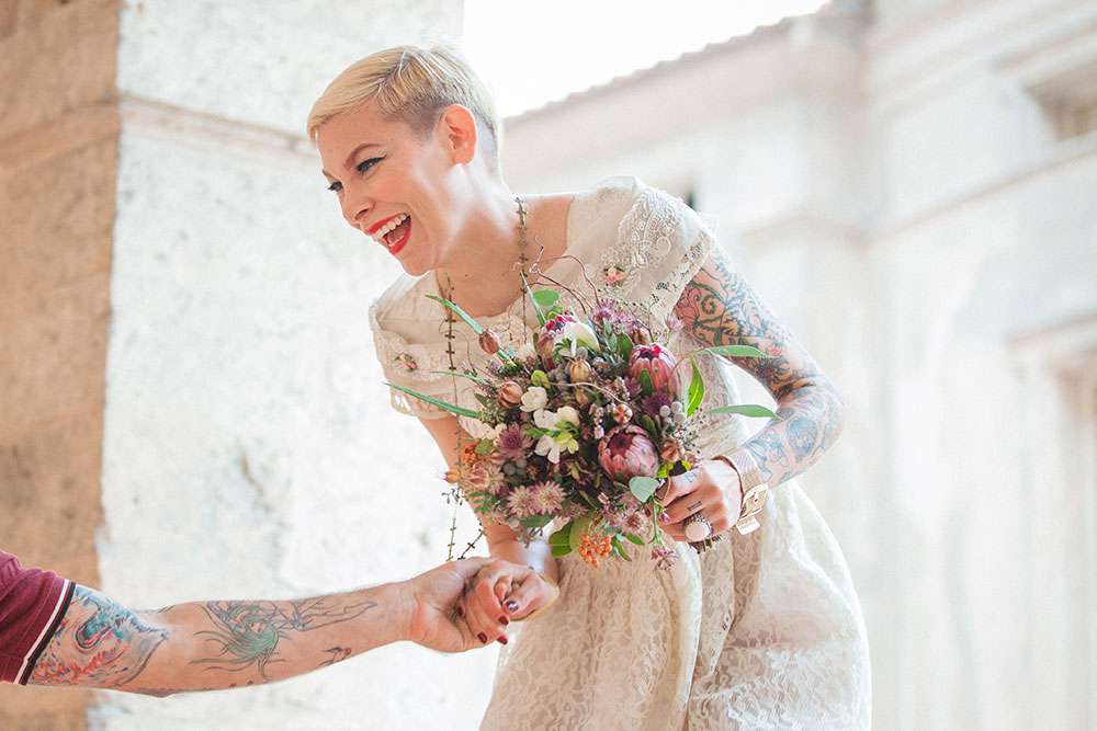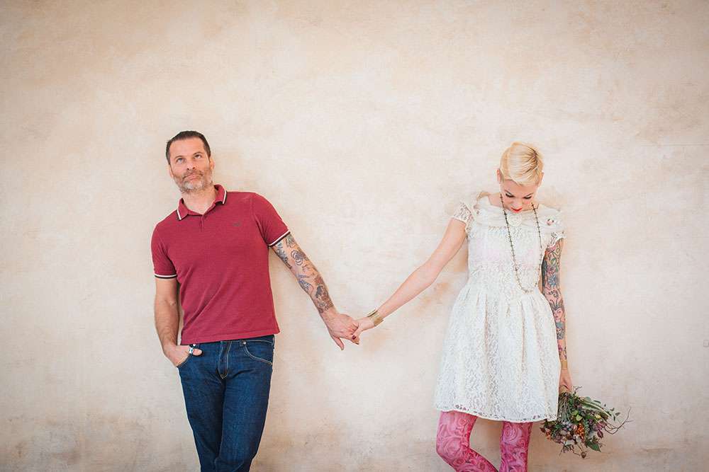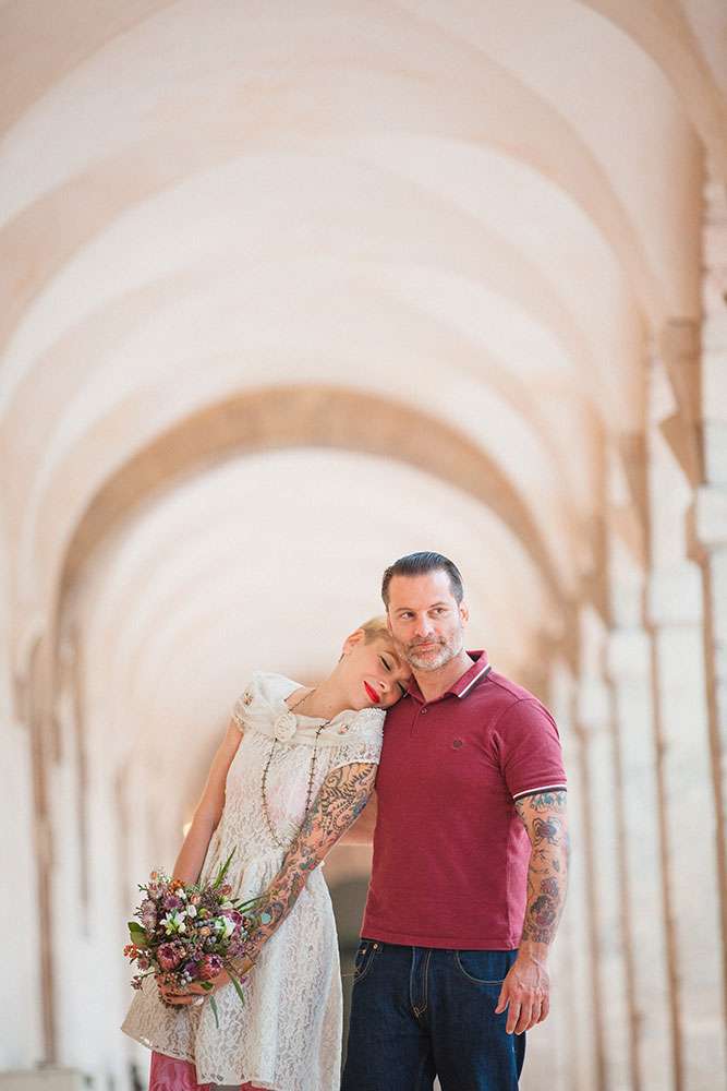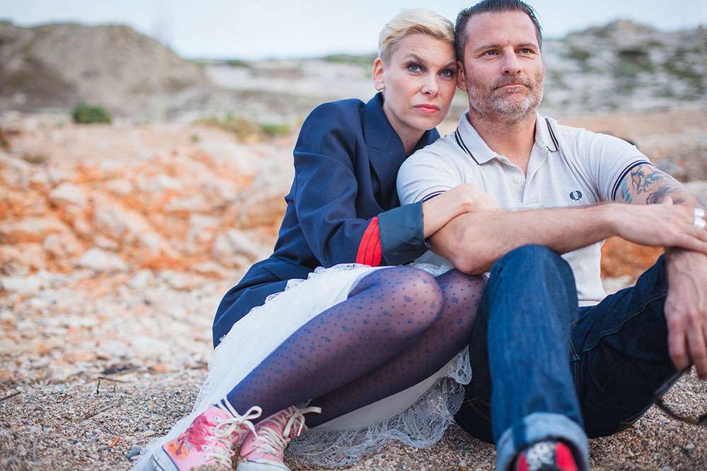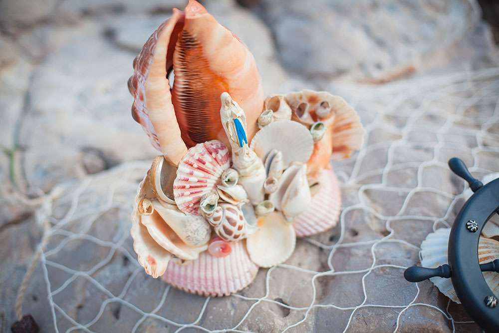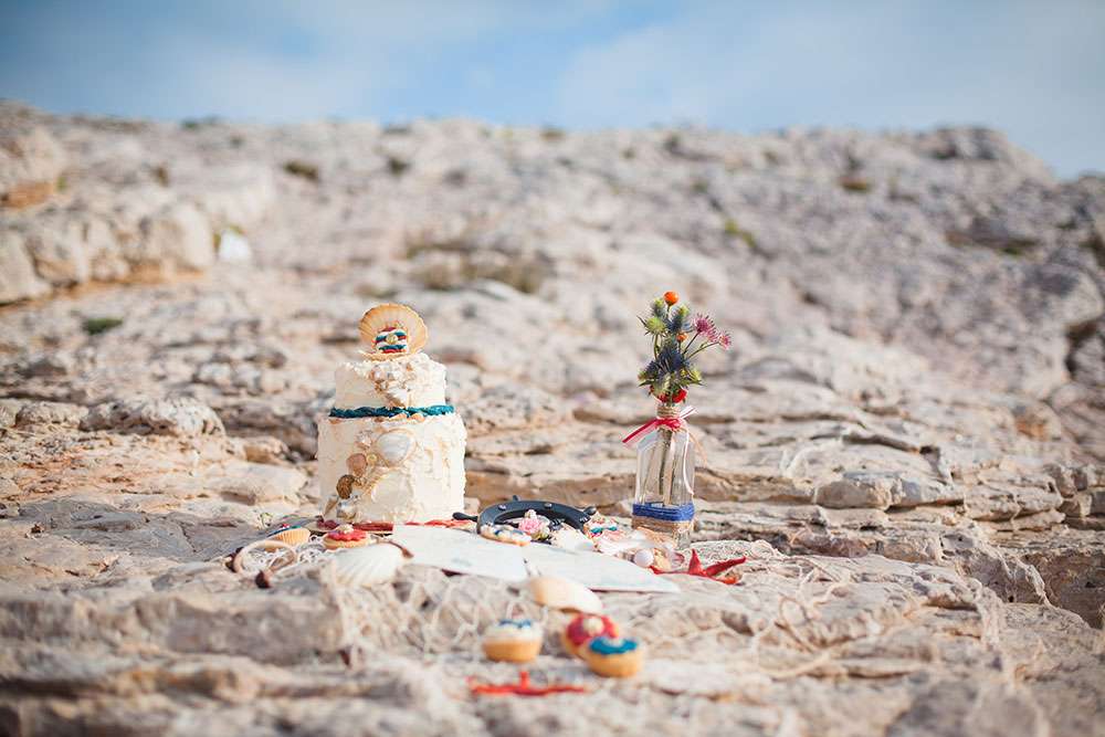 “A seaside themed photo shoot there may sound totally cliché, but with my team of fab suppliers, we worked with nautical symbols such as anchors, wheels, boats, sea shells”, wrote Lauren, “Laetitia and Franck are into tattooed and live an alternative life, so we included these influences too”.