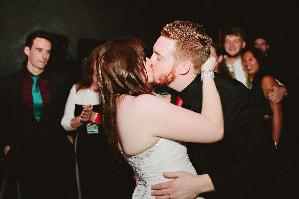 Of course a gig themed wedding wouldn’t be complete without bands playing throughout the night. “We had two live bands”, Lindsay continued. “The first was Flannel, a 90s cover band made up of a very talented group of guys. They were kind enough to grant the request of the bride and her mother, which was to play Eminem’s ‘My Name Is.’ The second band was Friends Like Enemies, which is the Tom’s rock band (all three of the other band mates were groomsmen in the wedding party). . Between the two bands’ sets, the mic was opened for anyone who wanted to give a speech. This was a form of entertainment in and of itself. After the two live bands played, Kevin Hales, drummer for Friends Like Enemies, mixed music to play for the last hour or so of the reception, mostly entailing of 90s and early 2000s music.”