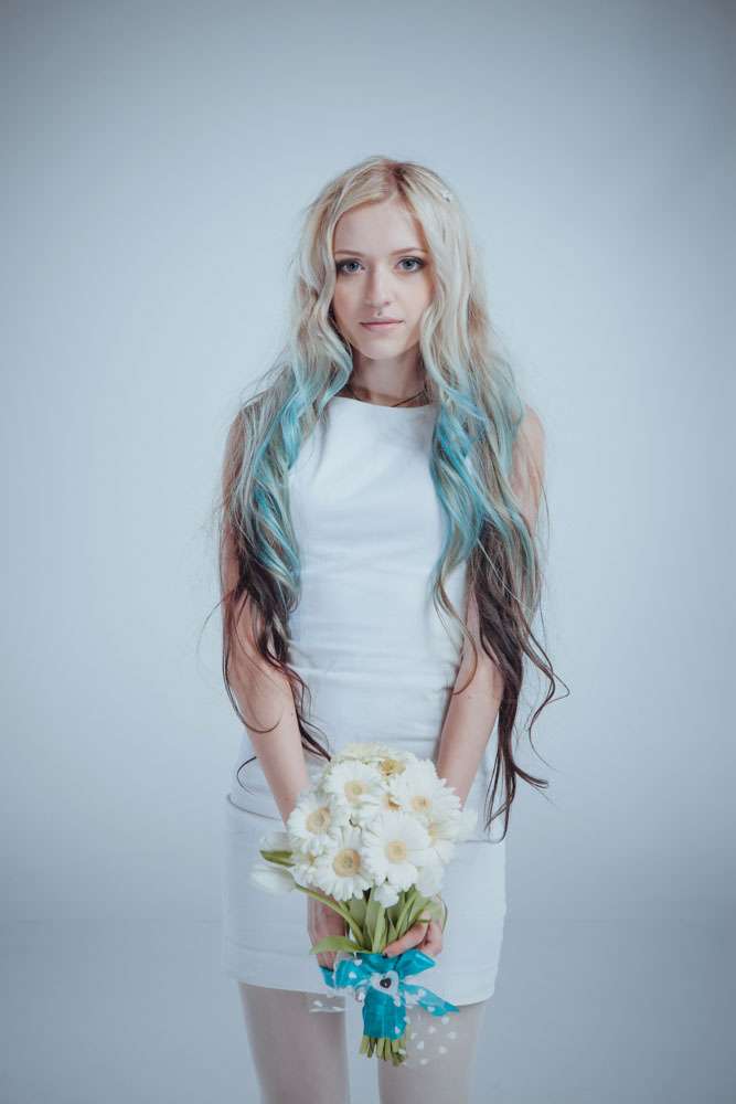 “At first I was planning my hair to be blonde, but I had blue hair before and struggled to get it out on time”, she concluded. “So unexpectedly, four days before the wedding, we decided that blue was to be our theme!”