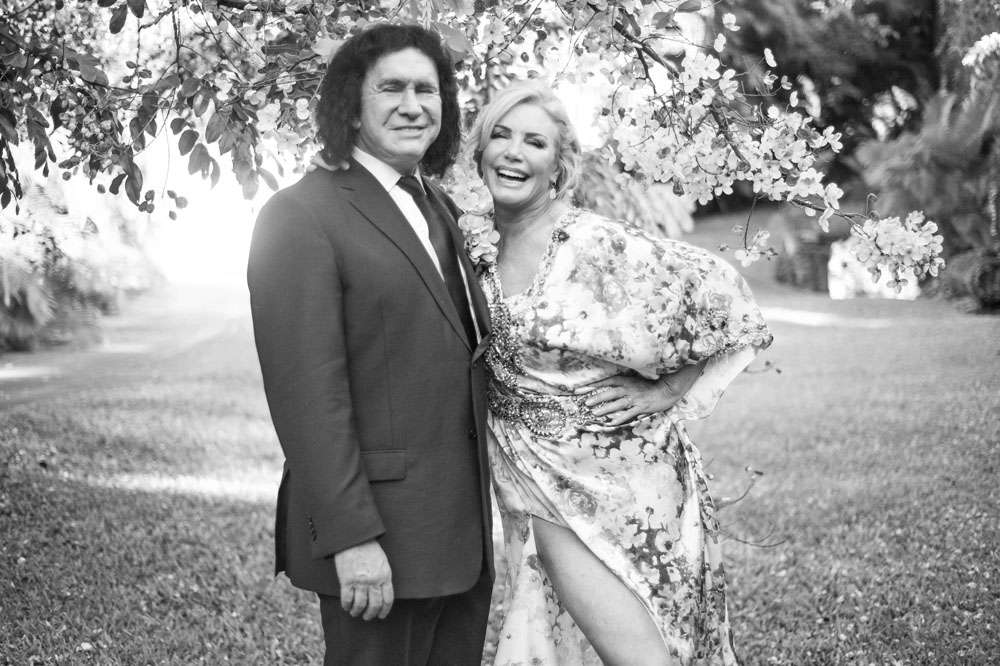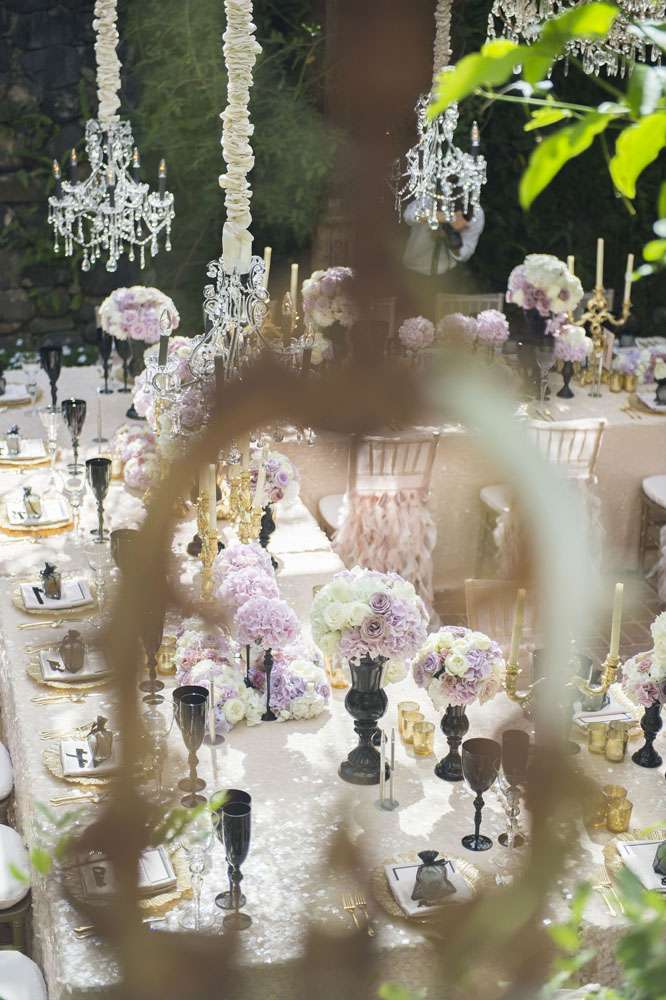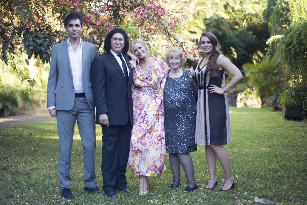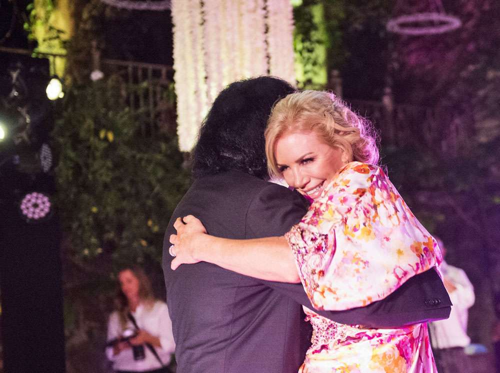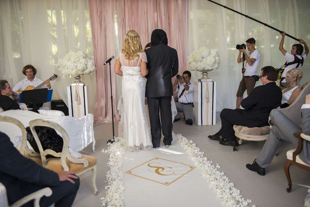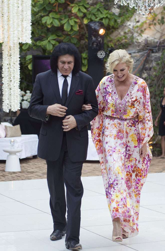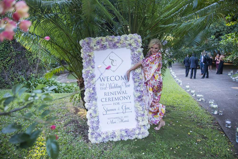 After being together 28 years, Gene and Shannon finally said “I do” in October 2011 but they obviously love it so much they did it again this year! Wedding planner Liberty Woodman of Lady Liberty Events styled the Hawaii event with pretty pink, black and gold accents and accessorised with opulent touches including giant flower walls, 100lb floral chandeliers and hundreds of hanging candles.