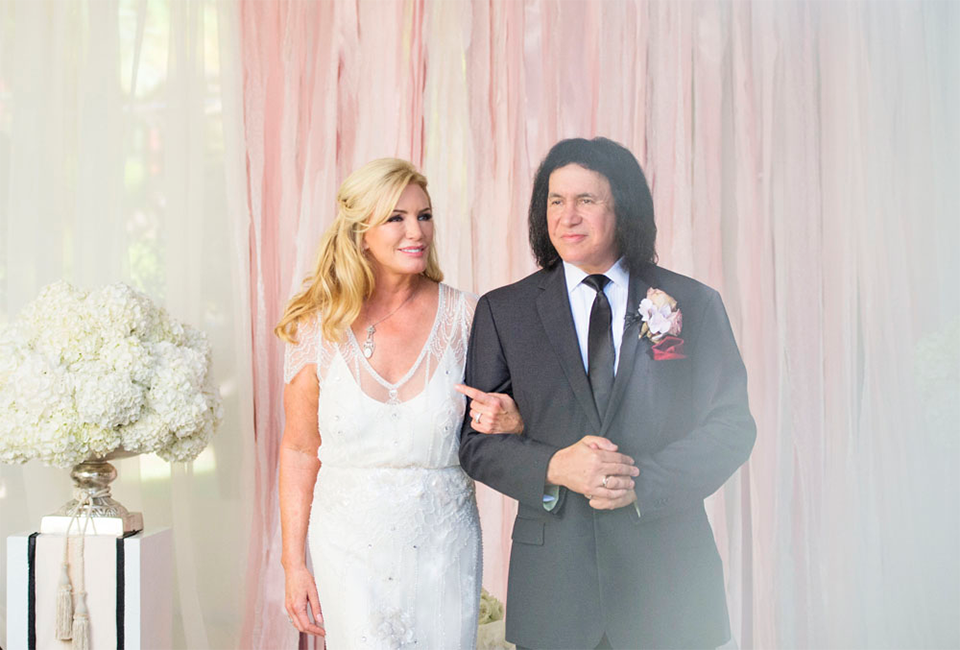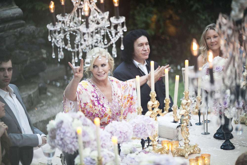 Obviously with Gene being who he is, the entertainment was going to be a big factor in this celebration. “The huge white dance floor glowing with Gene and Shannon’s monogram was surrounded by four, 100lb floral chandeliers that were simply mouth dropping”, Liberty continued. “Once everyone made their way to the dance floor, the evening’s festivities began! Shannon had requested karaoke for the reception, so we figured what better way than to have a live band play as their background music.”