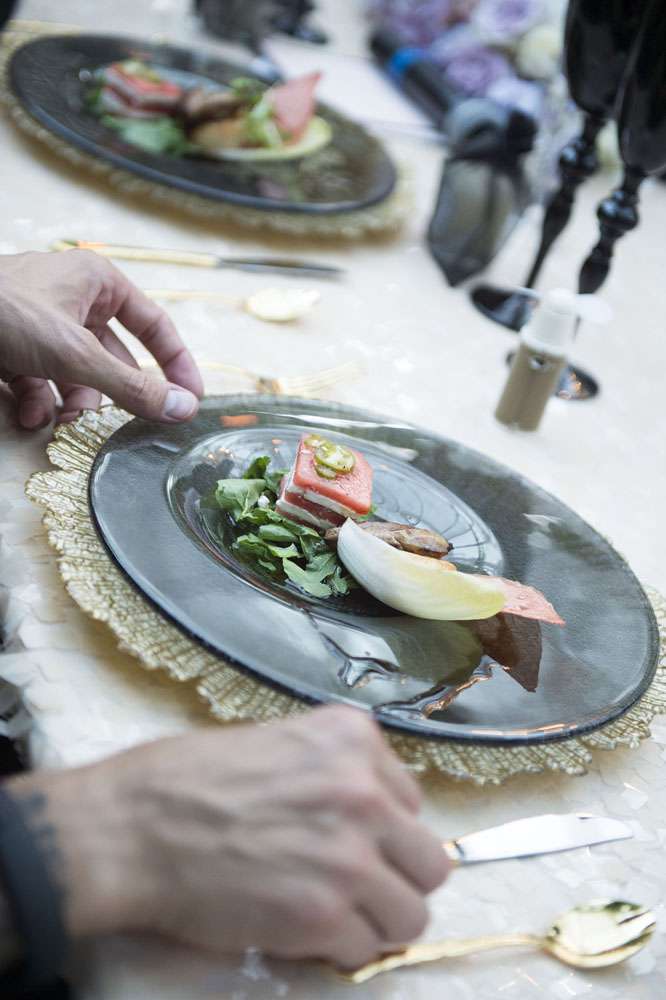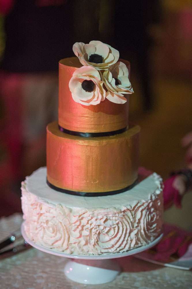 “As the evening came to a close, Gene and Shannon were presented with a stunning 3-tier cake, which consisted of two gold tiers with black trim, and a bottom tier of flawlessly piped ivory roses”, she concluded. “While the guests were gathered around, One Heart Weddings had surprised the guests with a same day edit video of the entire evenings activities, every guess was in awe. It was the perfect way to end this lovely gathering… you could absolutely feel the love in the air.”