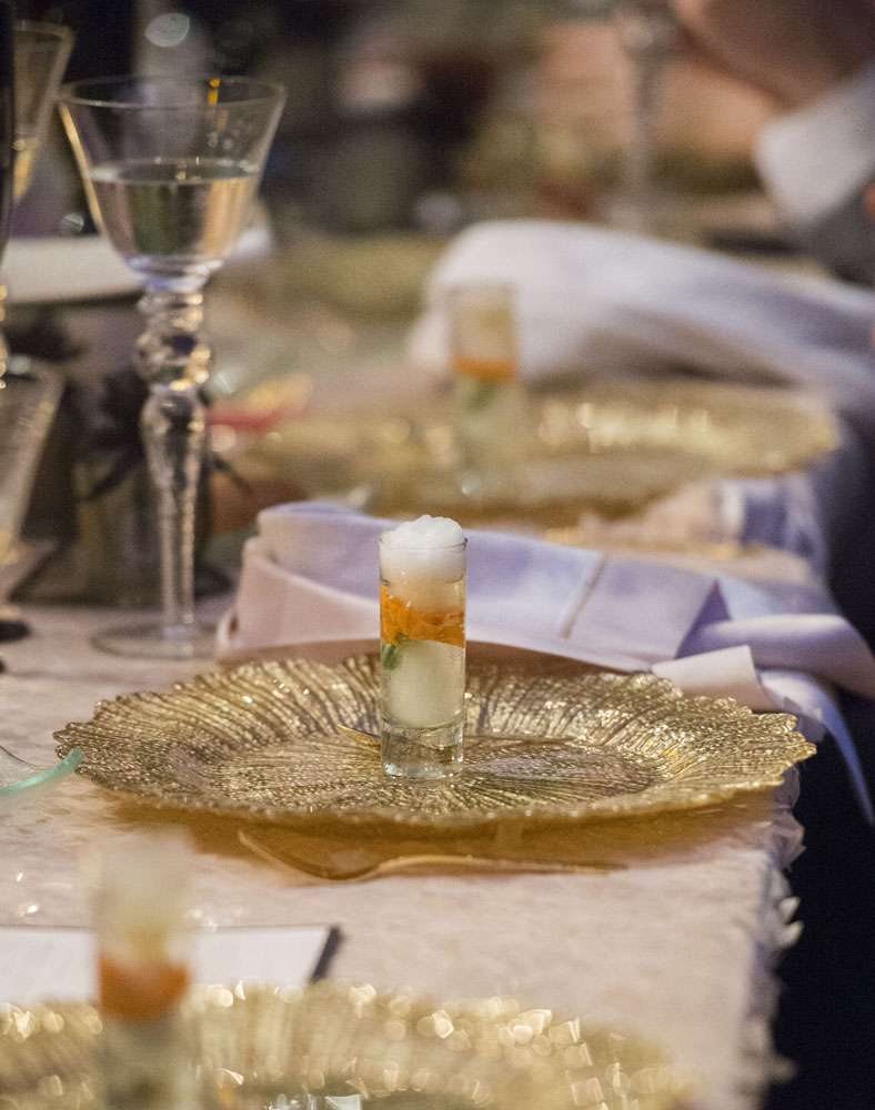 “Flanked with lush hydrangea centerpieces and a custom aisle showcasing their monogram, the walk down the aisle was nothing shy of stunning. Gene and Shannon’s daughter, Sophie, put together a warm and heartfelt ceremony and with the addition of their personal vows, there was not a dry eye in the house.”