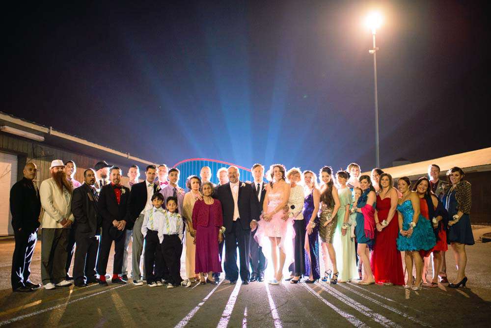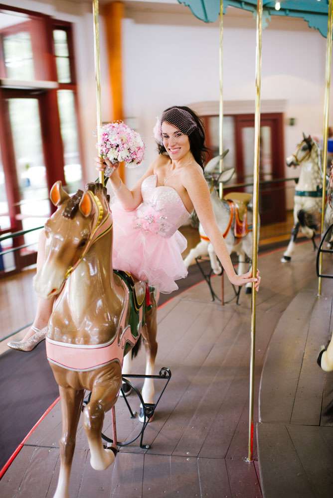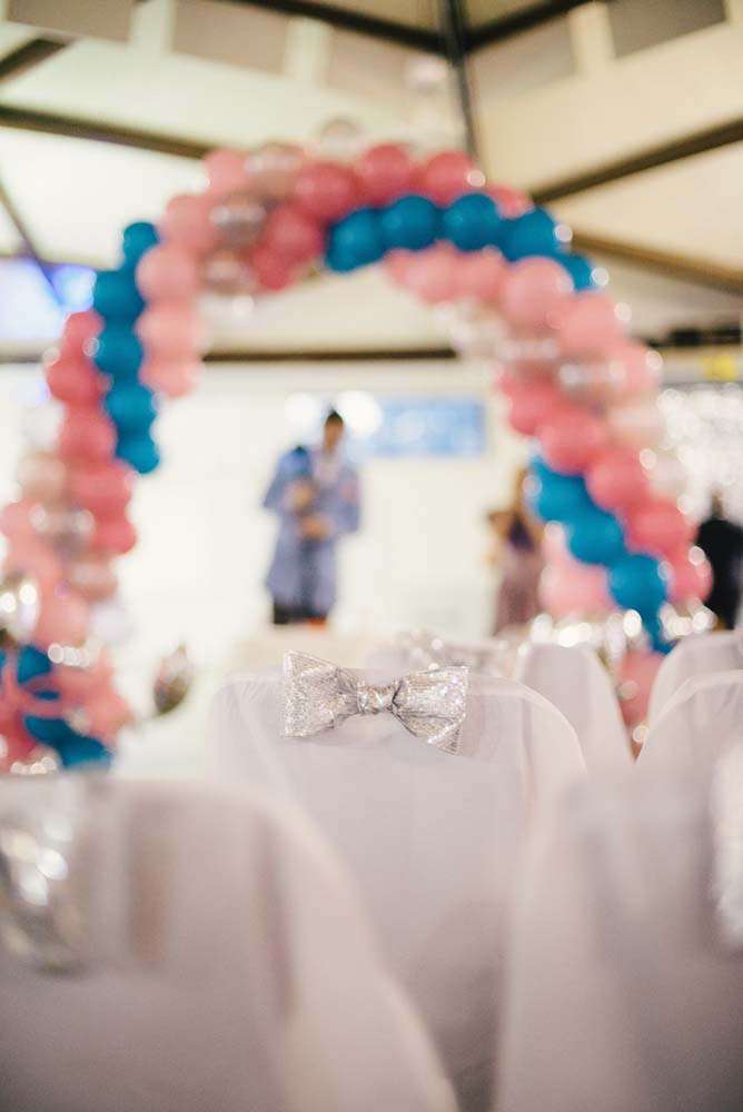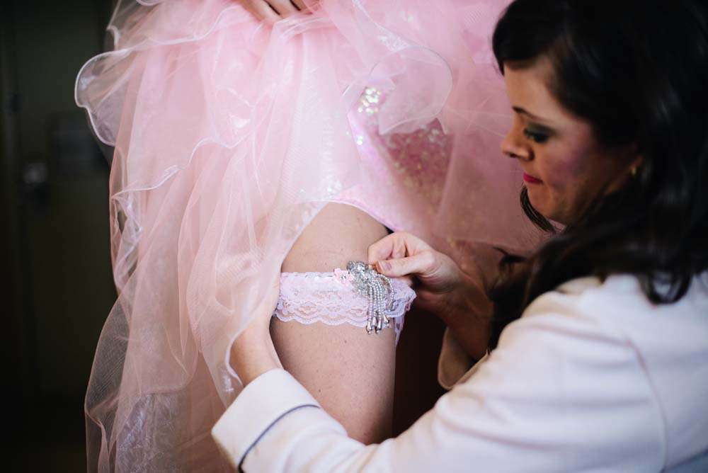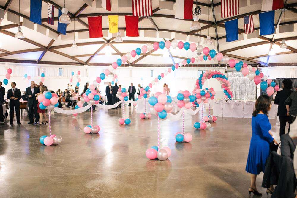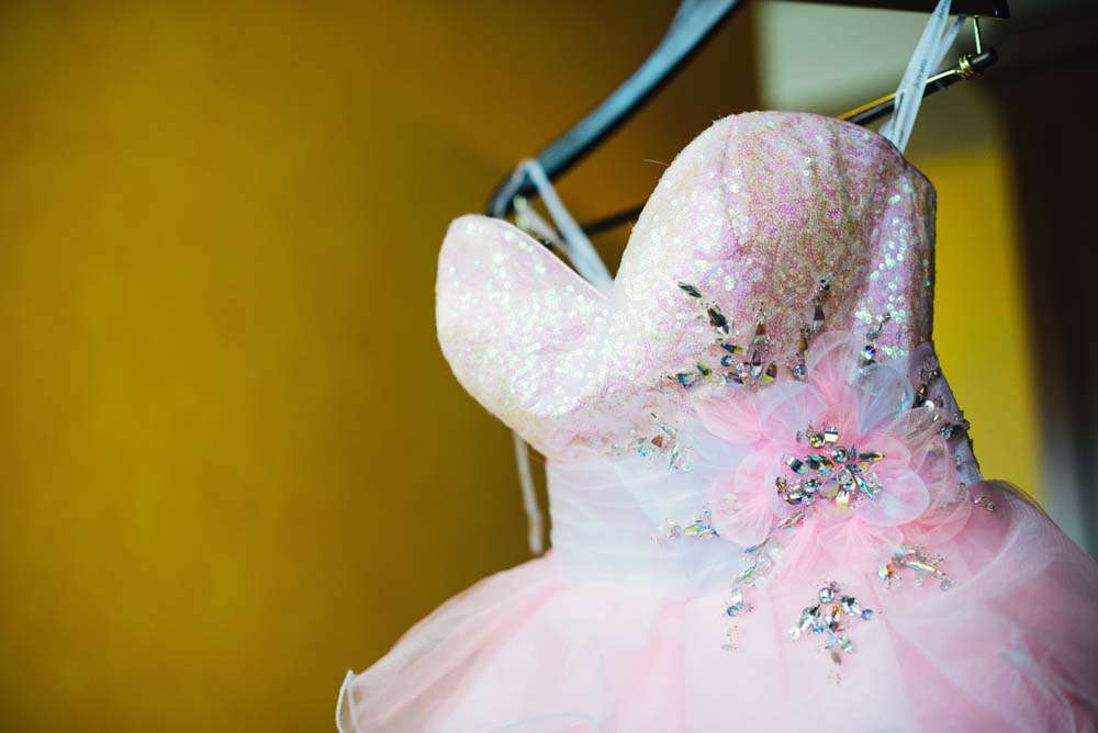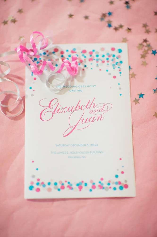 Elizabeth and Juan wanted their December wedding to be just like a High School Prom. “Our wedding theme helped everyone get in to the Prom spirit, attendees dressed in prom attire, and we went absolutely crazy with balloons”, began the bride. “Our wedding party was such a mixed, motley crowd. We wanted everyone to have fun and use their own style for their outfits. We wanted to run screaming from the traditional thing and my’s dream came true with my perfect pink dress. Our officiant even wore a purple prom dress!”