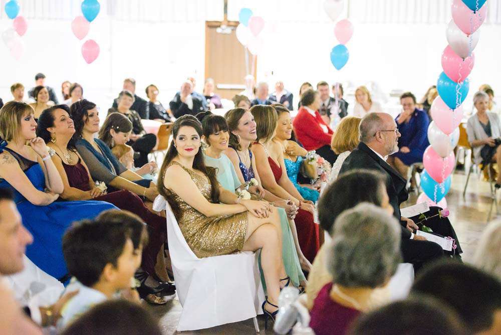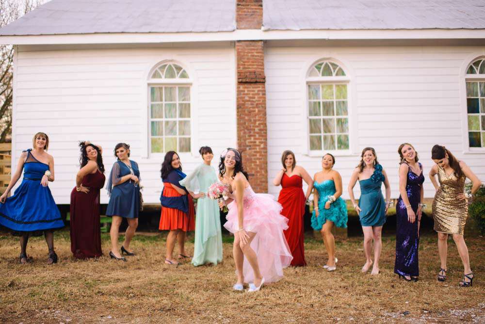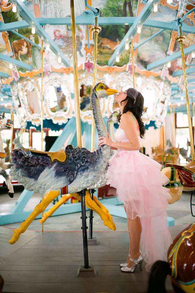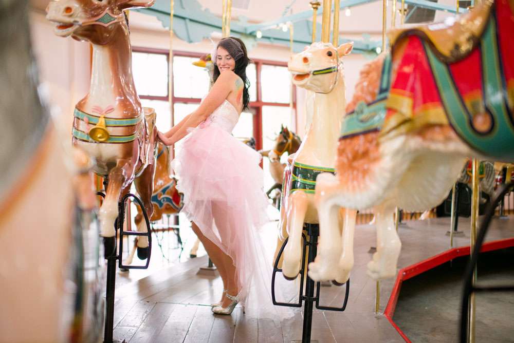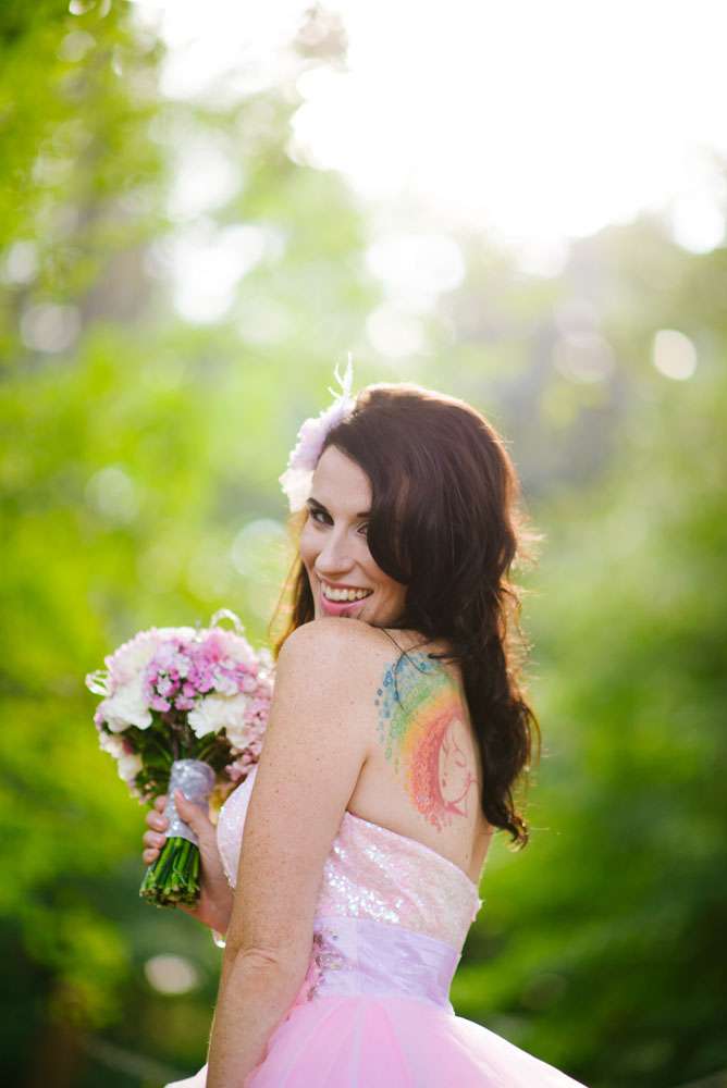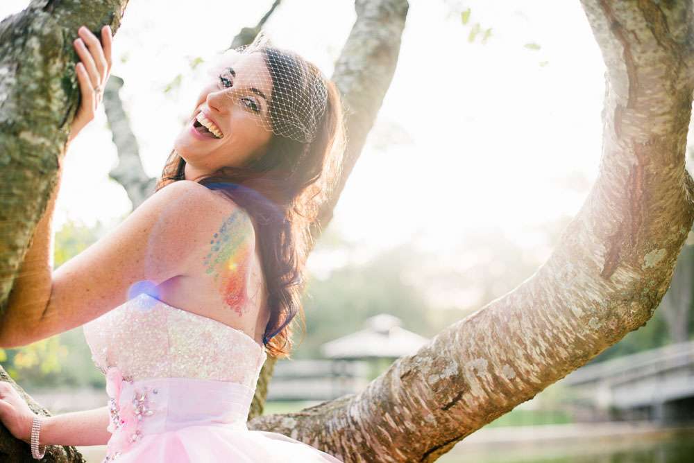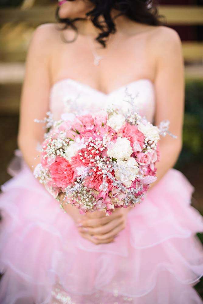 Elizabeth and Juan wanted their December wedding to be just like a High School Prom. “Our wedding theme helped everyone get in to the Prom spirit, attendees dressed in prom attire, and we went absolutely crazy with balloons”, began the bride. “Our wedding party was such a mixed, motley crowd. We wanted everyone to have fun and use their own style for their outfits. We wanted to run screaming from the traditional thing and my’s dream came true with my perfect pink dress. Our officiant even wore a purple prom dress!”