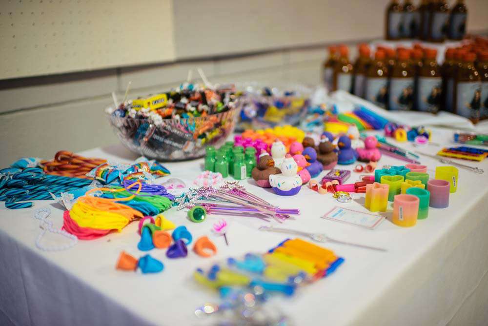 “We really saved money on all our decorations. We had sparkles, streamers, and wacky fun stuff galore. Other than the balloons and flowers we made all the centerpieces and got the supplies from Oriental Traders and the dollar store.”