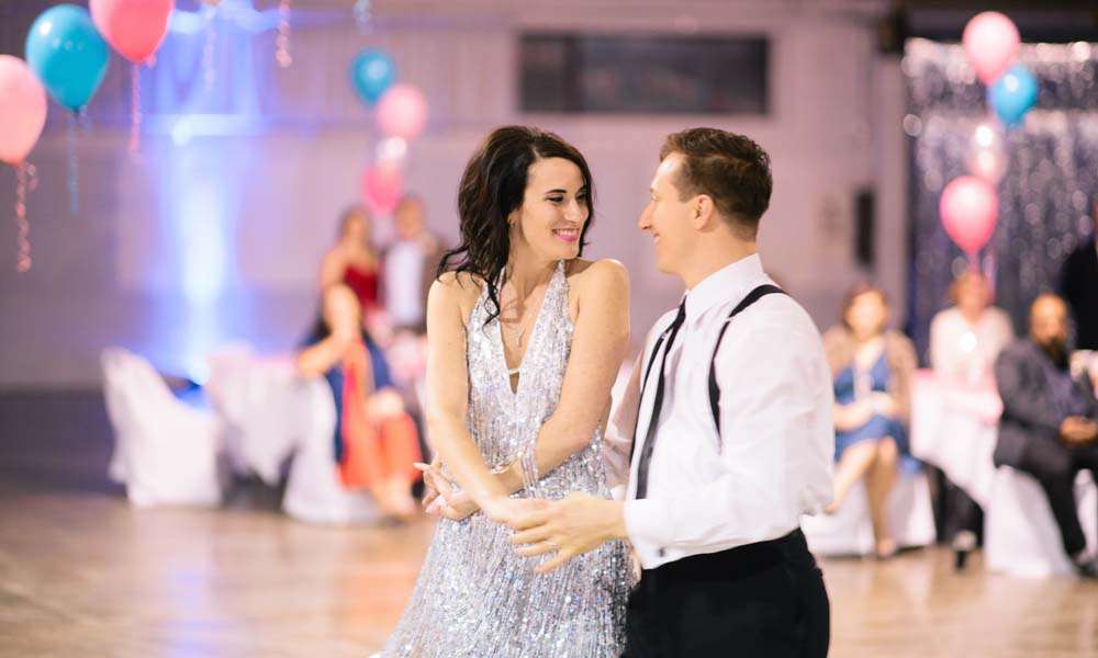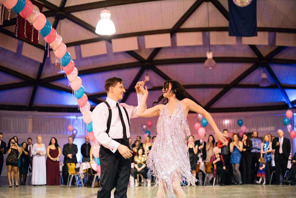 “Our first dance defined our wedding and we worked on it for months. We started out dreamy and slow and progressed into a full-blown hustle. I changed into a dress composed of silver sequins on strings for the dance that glittered like magic. Since we are both life-long dancers, the dance was a dream come true for both of us. It was our first choreographed dance together ever and we tore it up.”