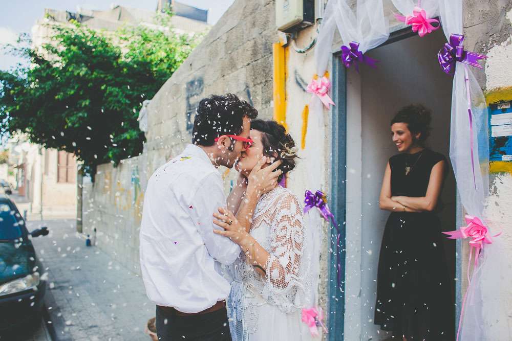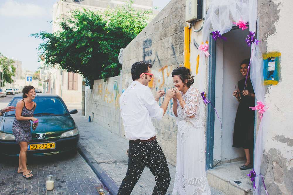 “We thought a lot about the concept because my parents are very religious. We originally planned to do the ceremony in Amnon’s parents’ backyard in Jerusalem and then do a rooftop party for just the young people in south Tel Aviv. But then we decided that it would be much better overall to include everybody in everything. In the end there were ultra religious people dancing with young hipsters and it was amazing!”