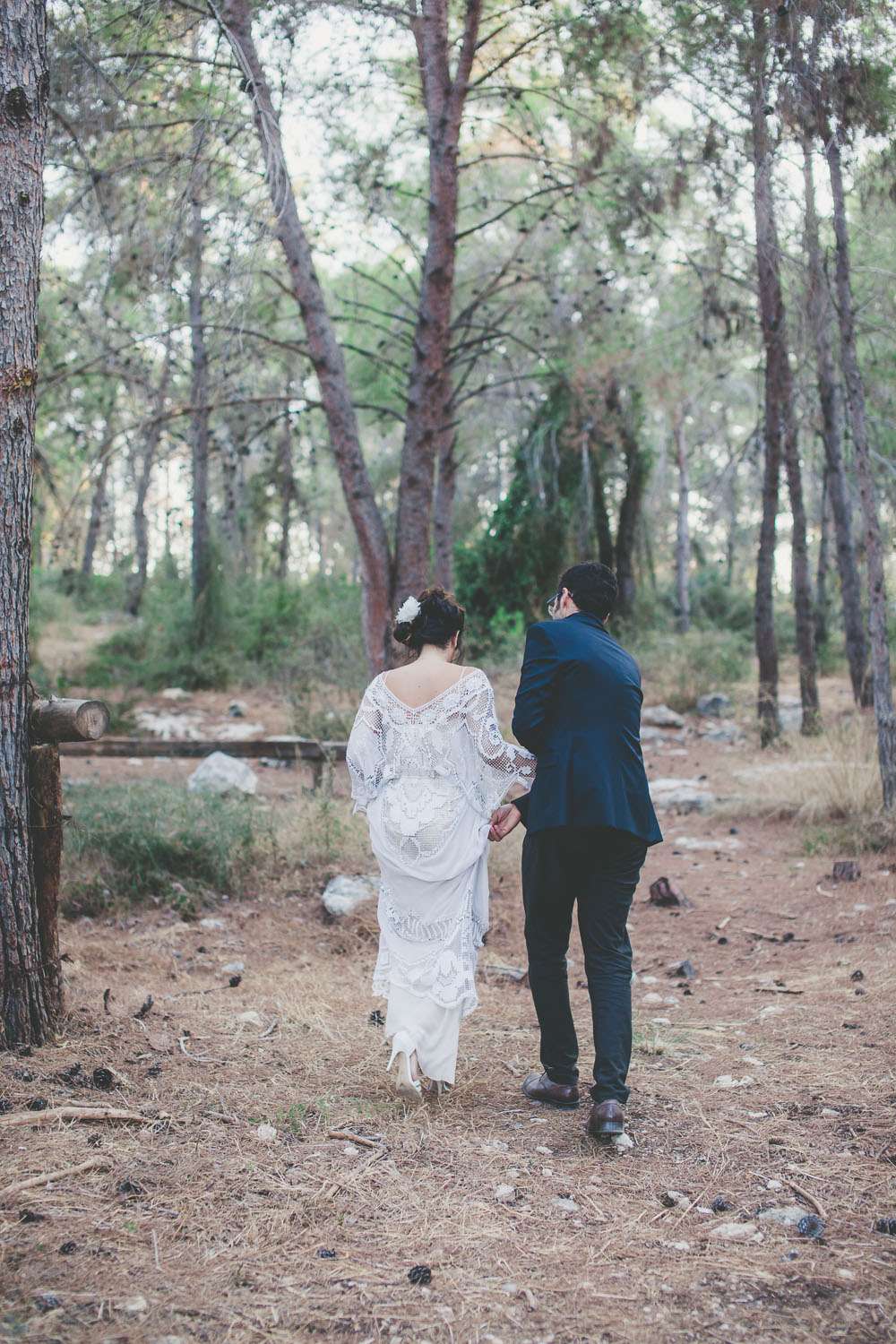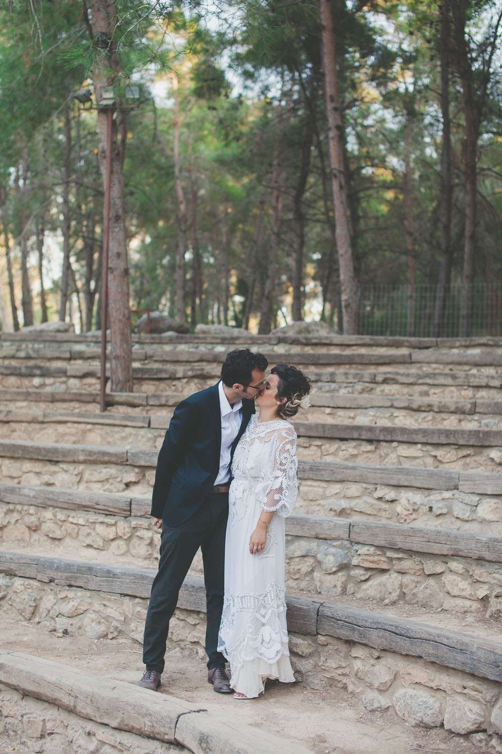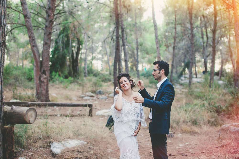 Mor and Amnon were married at a nature reserve between Jerusalem and Tel Aviv. The location helped to set their theme of ‘concrete and nature’. “We didn’t want to decorate the place too much because the forest around was everything,” began Mor. “We wanted people to come and enjoy nature, but to have the concrete floor to dance on too!”