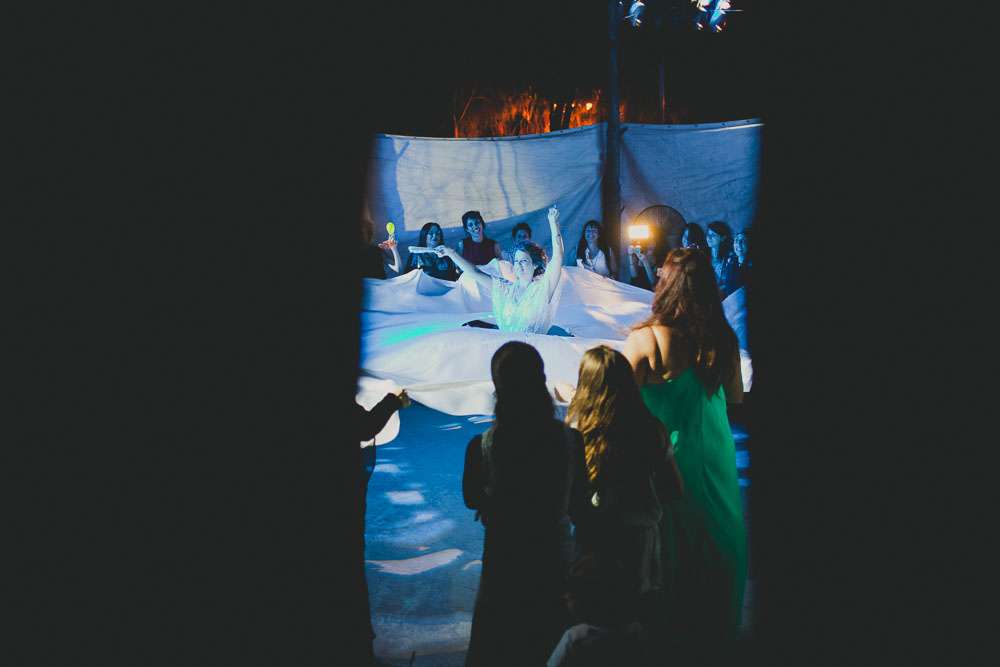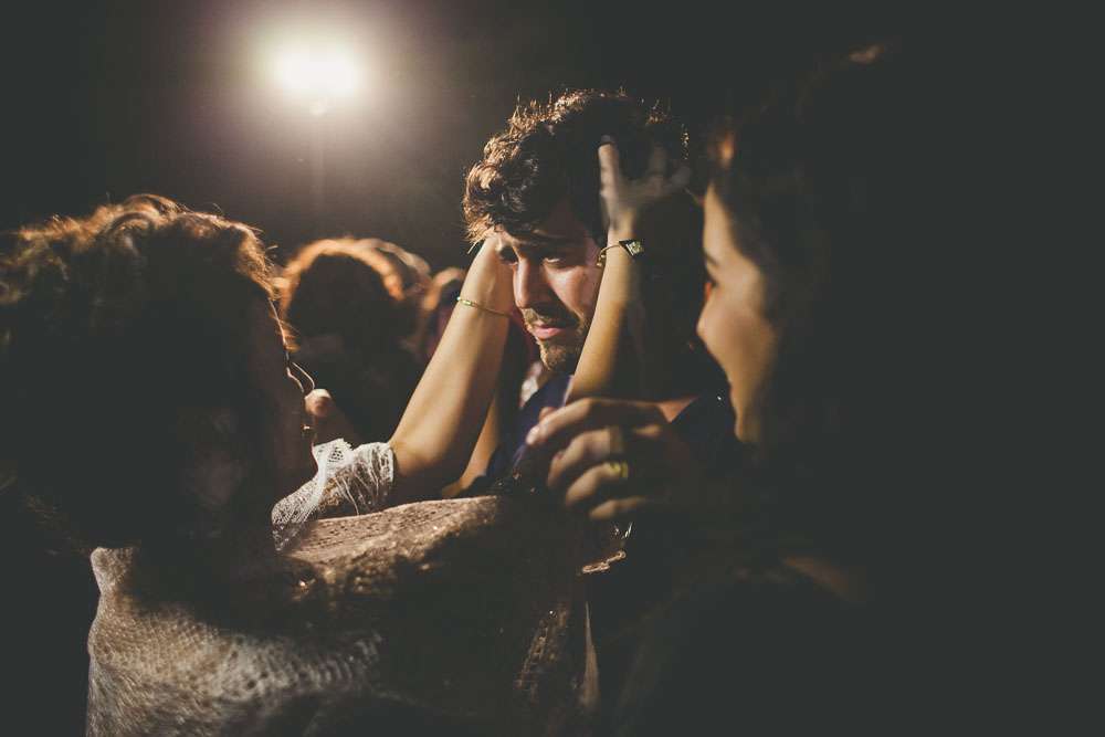 “In keeping with tradition there was a separation between women and men in the first hour of dancing. Full sealed three meter high fabric separation. It was super cool! My mom brought tons of accessories and the women’s area looked like a amusement park. The men tried to dance traditional Jewish dance but stumbled every five steps. The separation built a sexual tension and when the wall came down the women ran over to the men’s side like they hadn’t seen them after the world war! Oh and then the party really started!”