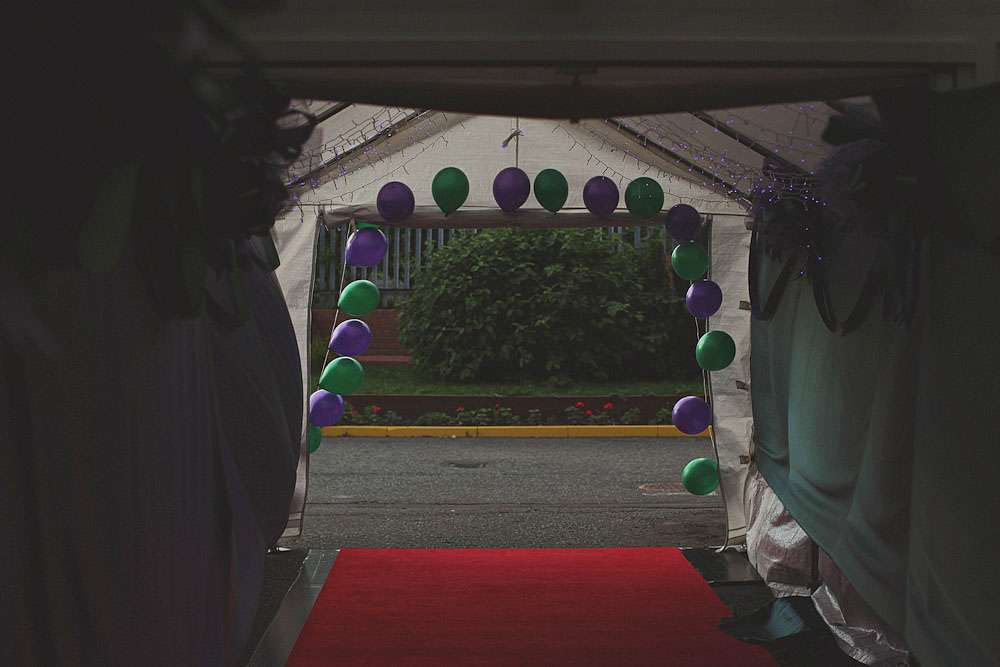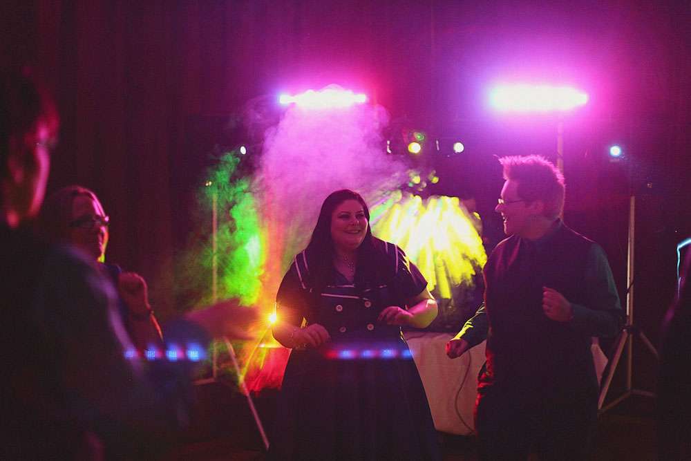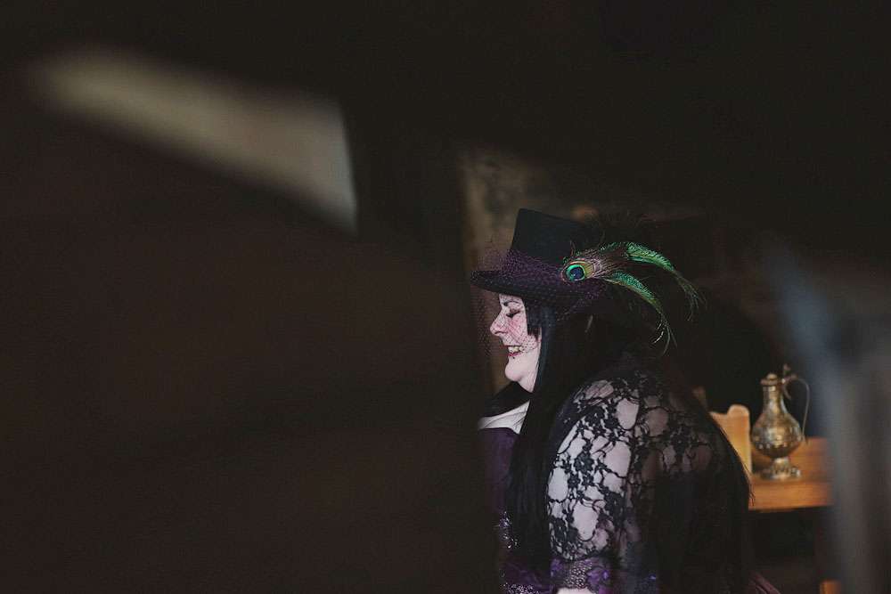 “Our DIY efforts included me trimming my top hat with feathers, making my own veil, all the buttonholes and the card box. I wired up and assembled all of the jewellery to make my bouquet too. The centrepieces for the evening venue were homemade, and the ‘prototype’ was made by me, but the credit for that goes to Jo’s sister, brother-in-law and best friend as they put them all together. Jo’s brother-in-law also made the backdrop for the dance floor out of fabric and fairylights on a wooden frame, and decorated the entrance with balloons, ribbon and more twinkly lights as an amazing surprise. I cried when I saw it all, it was so beautiful.”