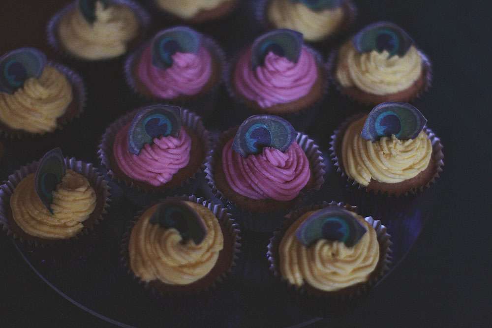 Peacocks were the inspiration for Steph and Jo’s army barracks wedding. Their favourite colours are green and purple so it worked out perfectly! They used peacock feathers throughout their wedding – on the cupcakes, as the centrepieces and as motifs on the stationery.
