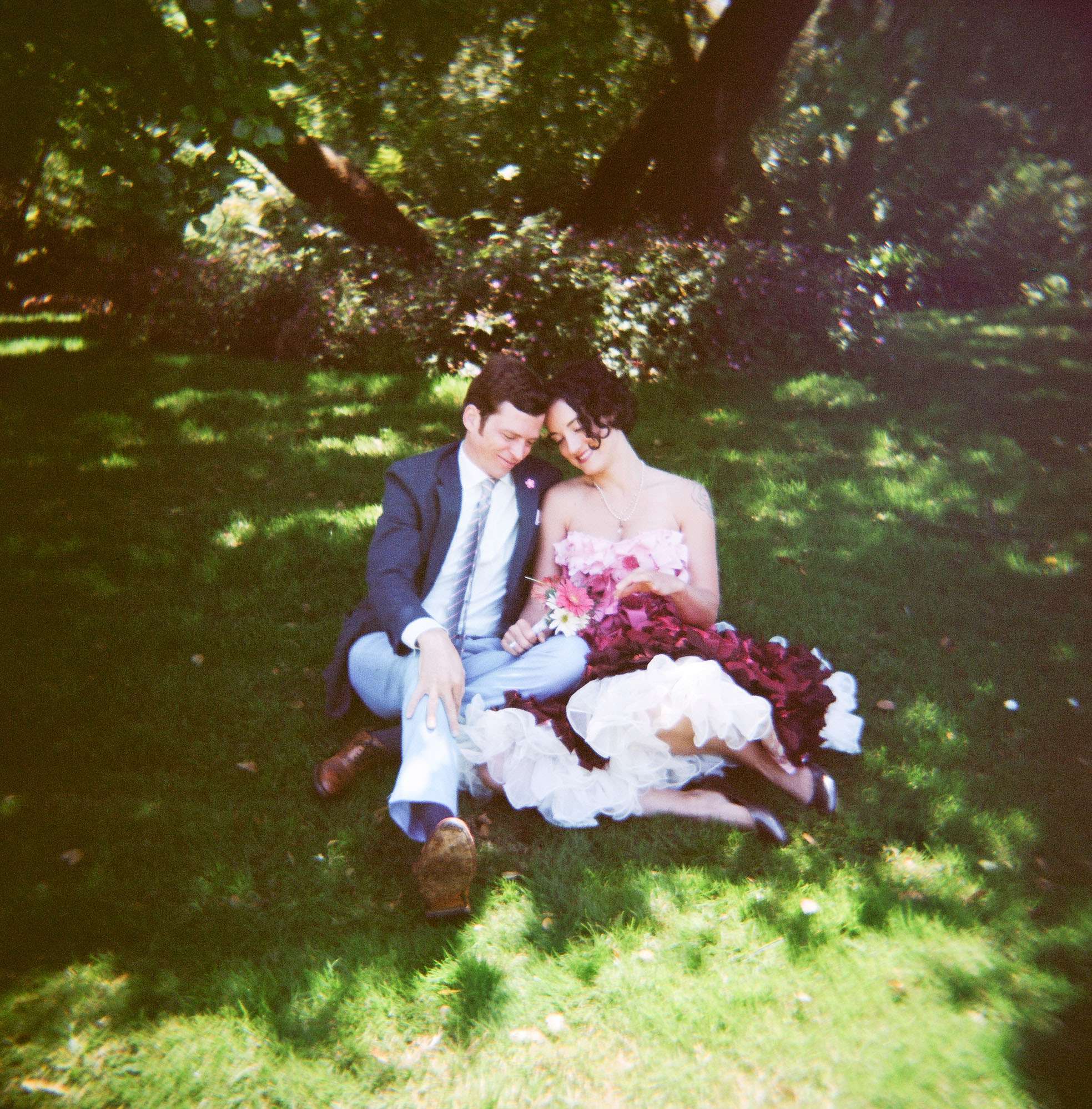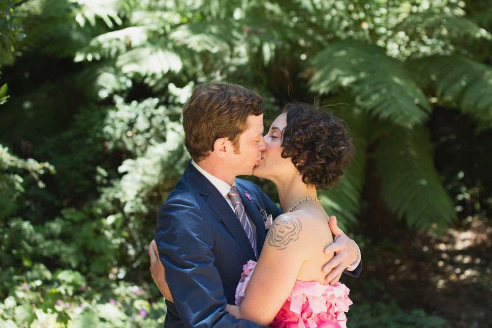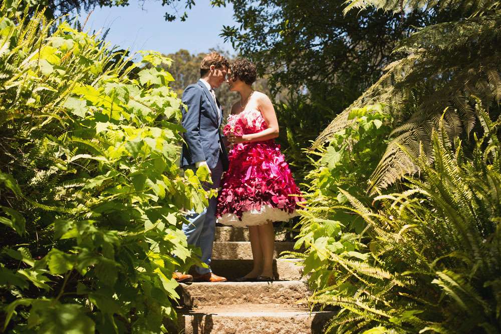 Adriene and Shannon wanted an informal wedding so they held their ceremony at Aids Memorial Grove in the Golden Gate Park, San Francisco. It was followed by a picnic reception in the park. One of the most unique and awesome parts of their wedding was the bride’s ombre wedding dress, which she made herself by upcycling two second-hand dresses and making them into one!