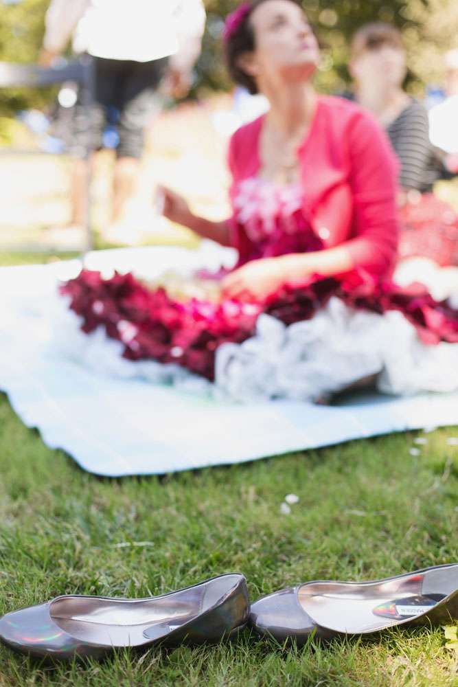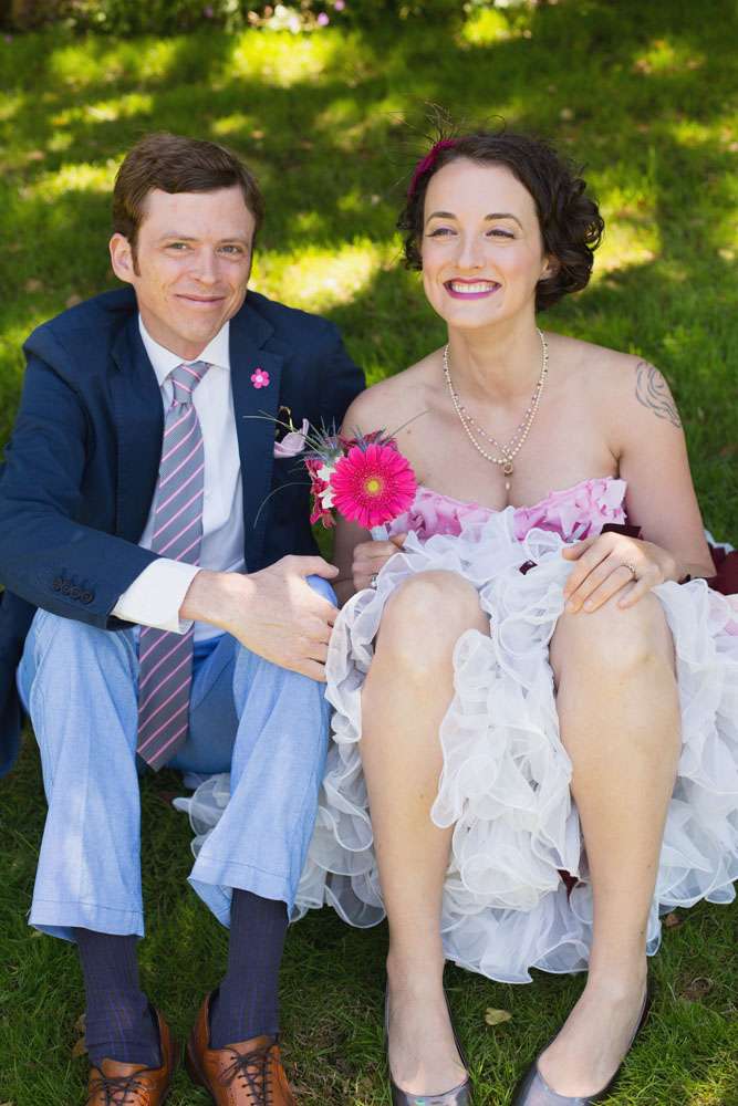 The wedding was super casual and laid back and the couple wanted their guests to be comfortable. “We told our guests that it was a picnic in the park and asked them to wear stripes and/or bright colors”, she continued.