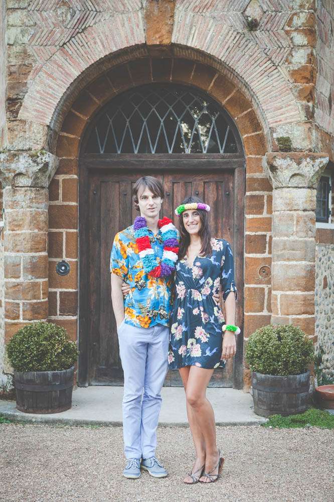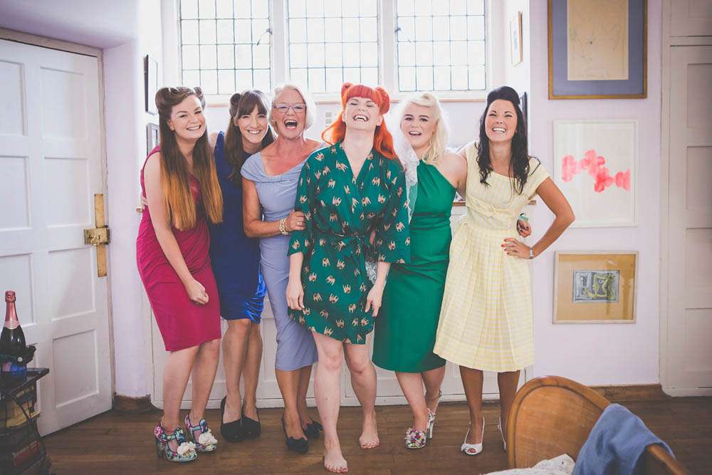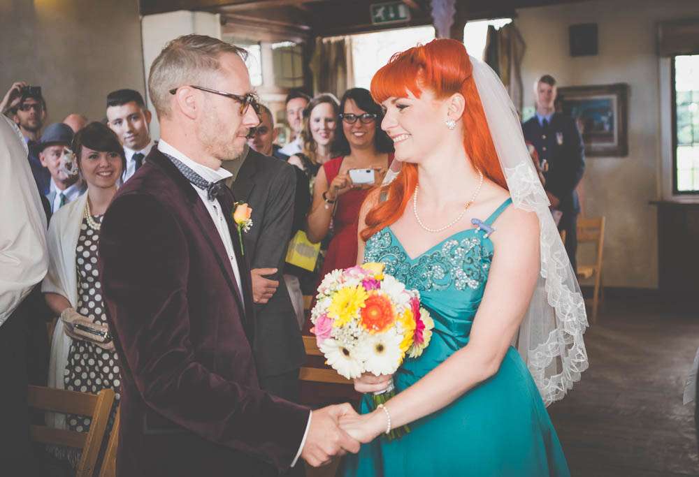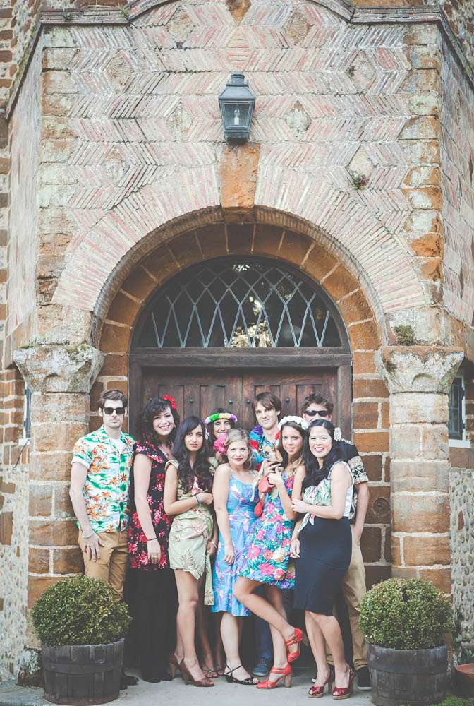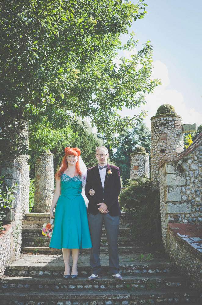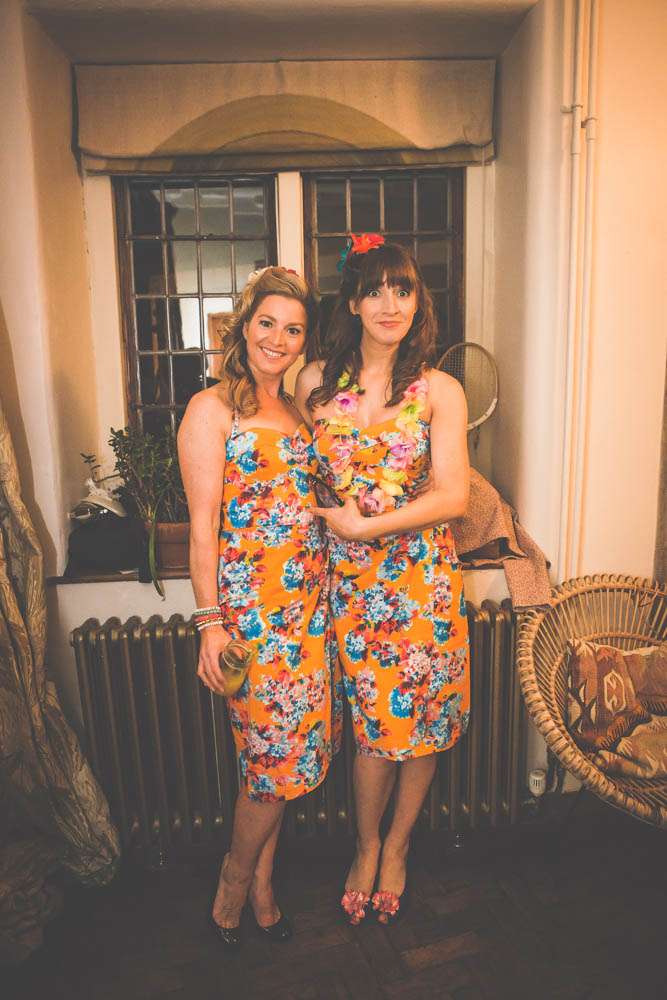 The bride wore two dresses (well she needed something to get changed into after the bath photos!) Her beautiful blue gown was vintage and her evening dress was from Vivien of Holloway. “We both love to dress up and a 50s theme was just perfect as it allowed people the flexibility to wear a style that suited them. We had people in Hawaiian shirts, others in formal attire, some in bikinis and loads in evening dresses! Although we had the guiding themes for the daytime and evening, we also stressed that people could turn up in Converse and shorts if that’s what they wanted.”