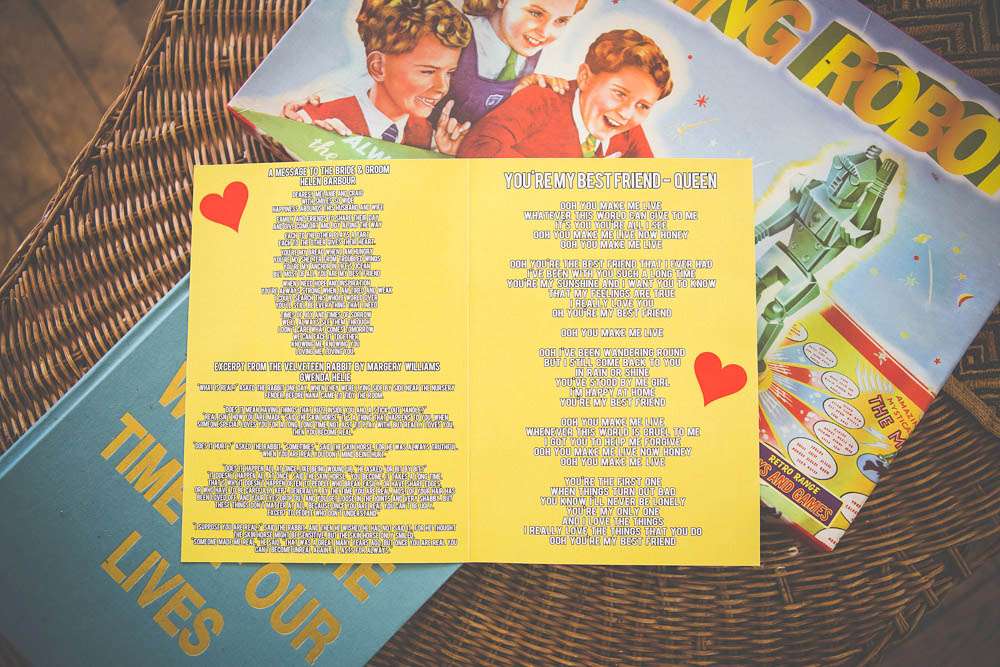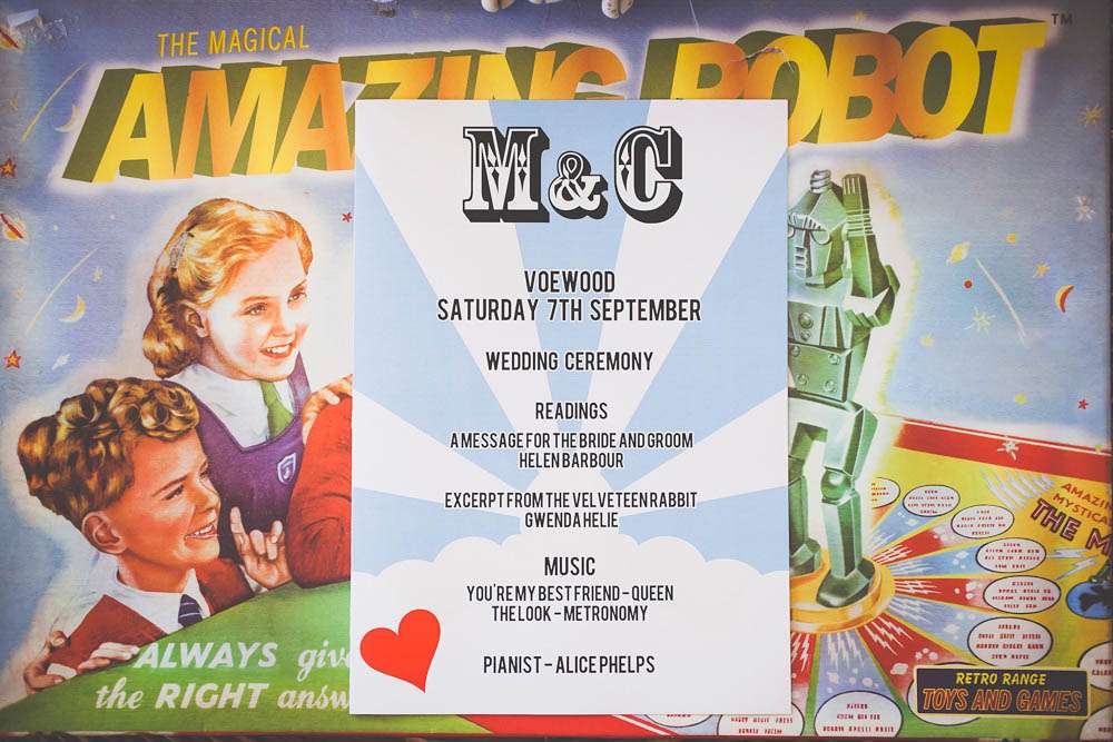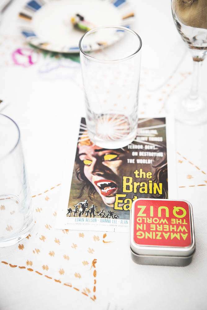 “Having designed the invites ourselves we also decided to print them ourselves too”, the groom continued. “Mel sourced a Japanese Gocco printer and once it was shipped over we set ourselves up a mini printing factory. Gocco’s allow you to create a small printing screen from a photocopy or laser print of any image. This in turn allows you to screen print as many images as you can with the ink you have available. It has a really cool retro look and was perfect for our theme. A big tip here is that a little ink goes a long way!”