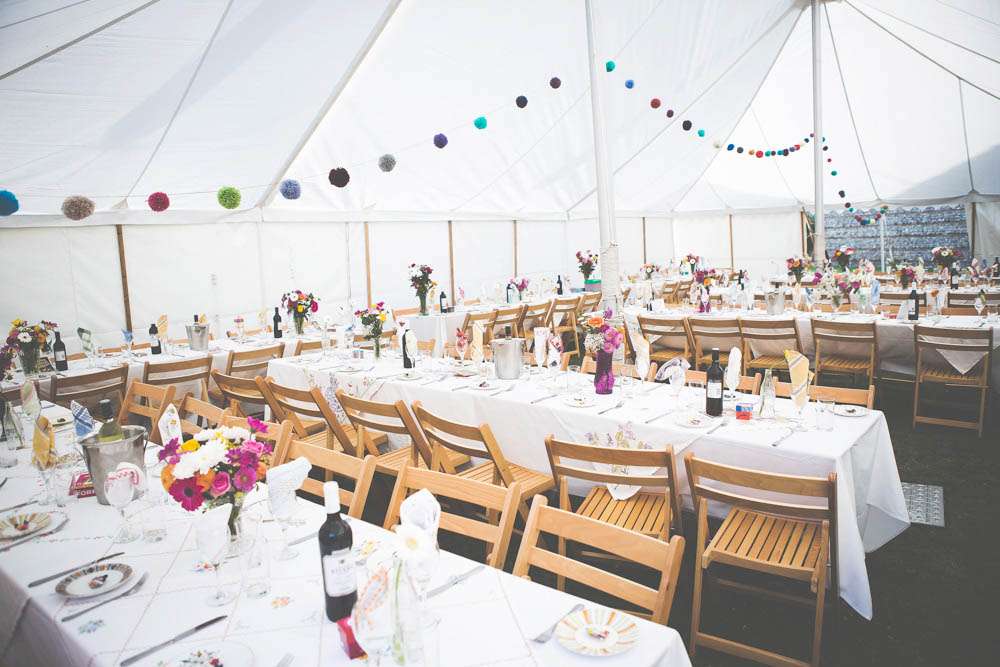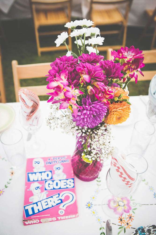 “Our wedding was 1950s chic with a homemade slice of psychedelia”, began Craig. “We really wanted the whole party to feel relaxed and personal for both us and our guests, so we did as many things as possible to make this happen. This included the name badges we made, the games on the tables and in the gardens, the caterers, the music and the dress policy. Everything was always focused on fun and having a good time and not being too regimented.”