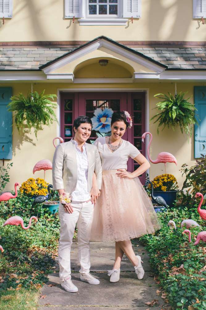 “As a nod to John Waters, I wanted to advocate LGBT rights by incorporating a same-sex couple for my first ever styled shoot”, she continued. “I felt strongly about this because I’ve noticed a lack of representation for same-sex couples on popular wedding blogs (not Rock n Roll Bride obviously!) It’s nearly impossible to stumble across a same-sex styled shoot, so I wanted to change that. Baby steps.”