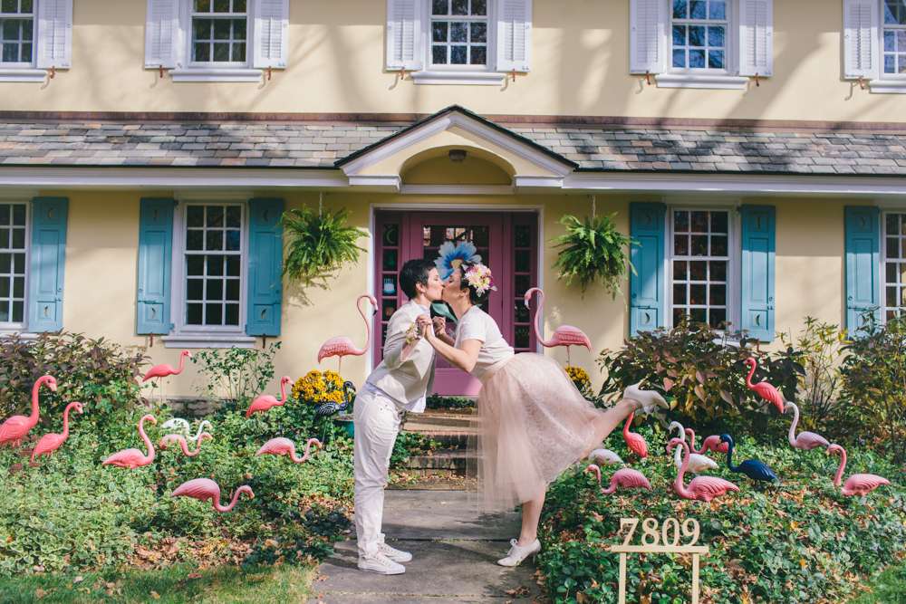 “Last year, I was photographing a couple in Philadelphia for an engagement shoot”, wrote Shannon. “On my way home, a few minutes from the location, I drove past a lovely yellow house with tons of pink flamingos scattered across the lawn. I screeched my brakes and drove in reverse so I could capture a quick snapshot of the house. It instantly reminded me of the John Waters film, ‘Pink Flamingos’ and made me smile.”